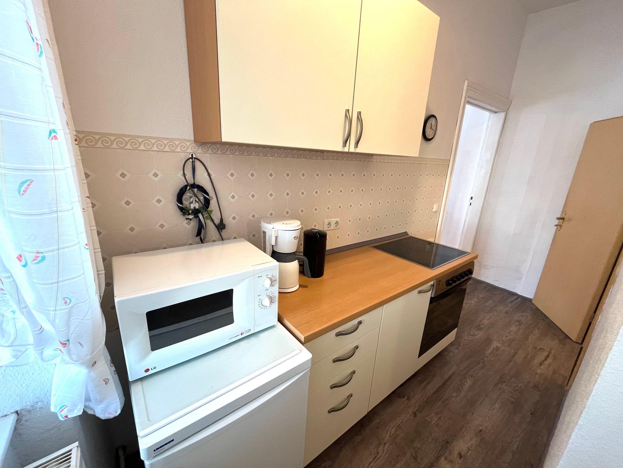 Die 50m² große 2-Raum Ferienwohnung befindet sich im 1 Obergeschoss. Am gemütlichen Wohnzimmer lädt ein geschlossener Balkon zum verweilen ein. Die Küche ist zweckmäßig mit Kühlschrank, Backofen, Mikrowelle und diversen Kleinstutensilien ausgestattet. Im Schlafzimmer befindet sich ein Doppelbett mit getrennter Matratze (1,80 x 2,00). Badezimmer mit WC und Dusche.