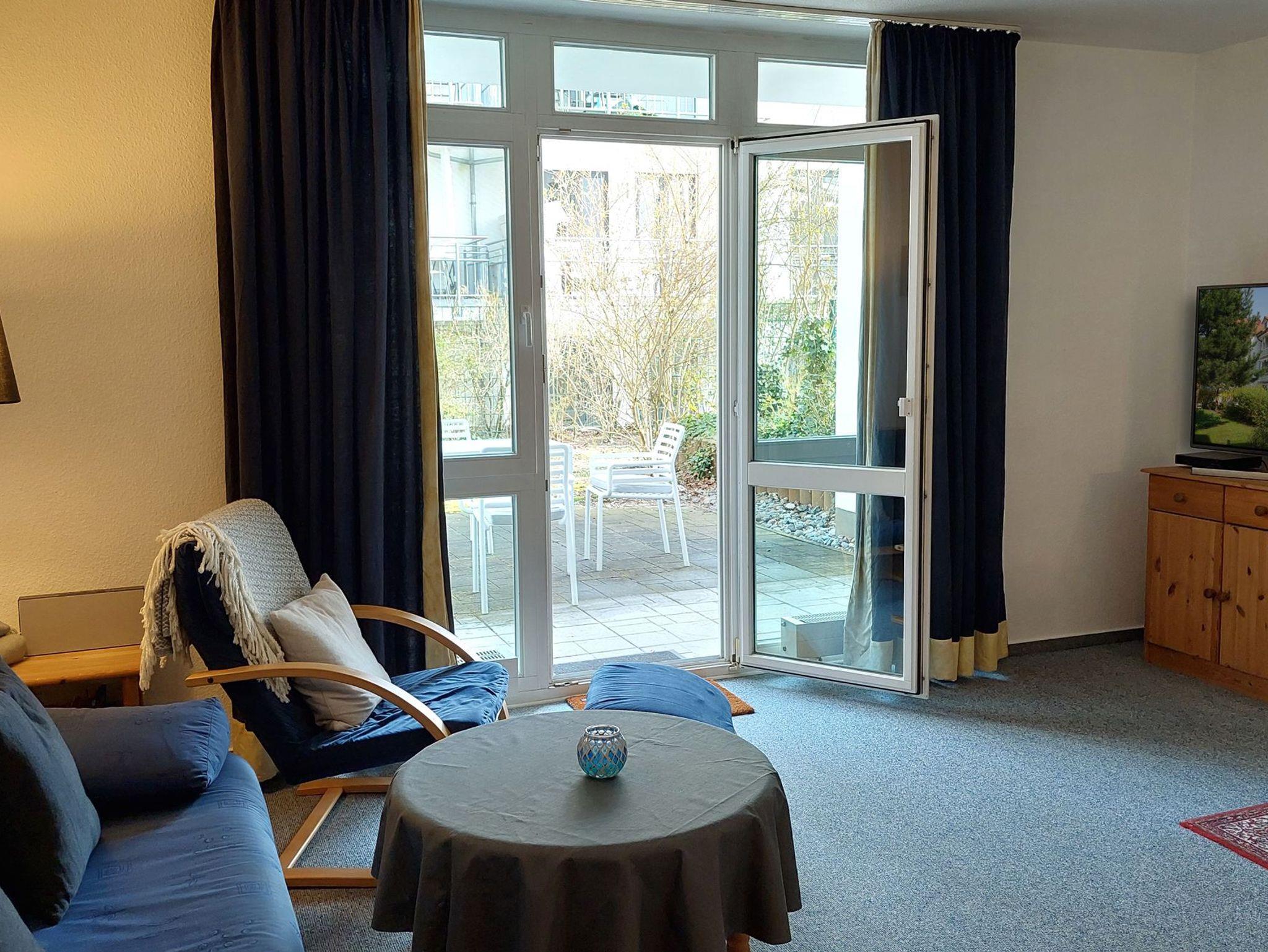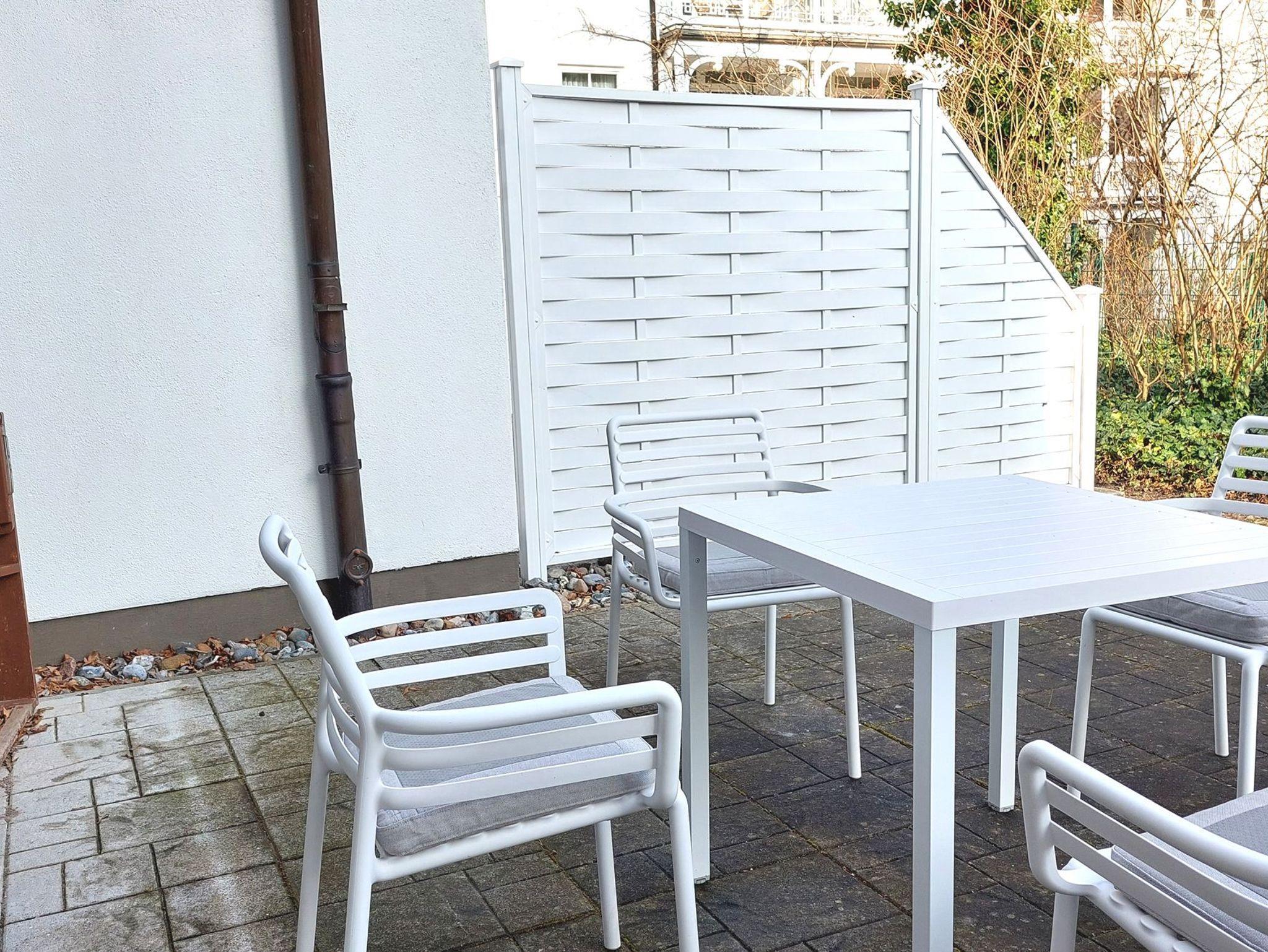 Gemütliche 2-Zimmer-Nichtraucherwohnung mit Terrasse und Strandkorb in Binz, ideal für Familien und Strandnähe.