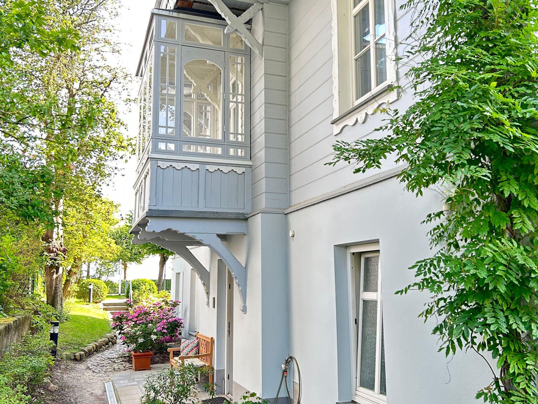 Historische Villa Ruscha in Binz: Helle Erdgeschosswohnung mit Terrasse direkt am Meer und Gartenblick.