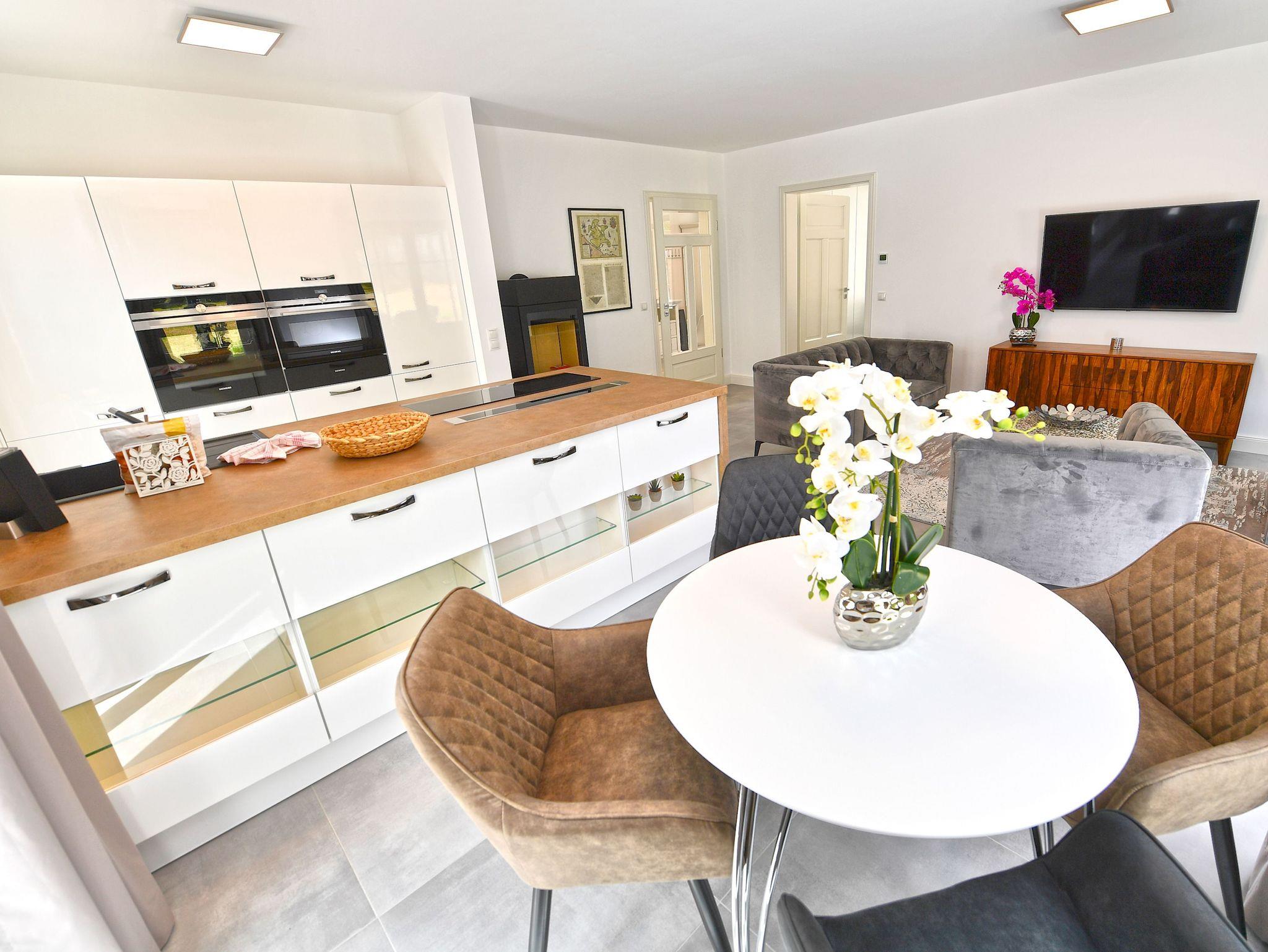 Großzügige Gartenwohnung in Binz mit privater Sauna und Kaminofen für entspannte Ostseeferien.