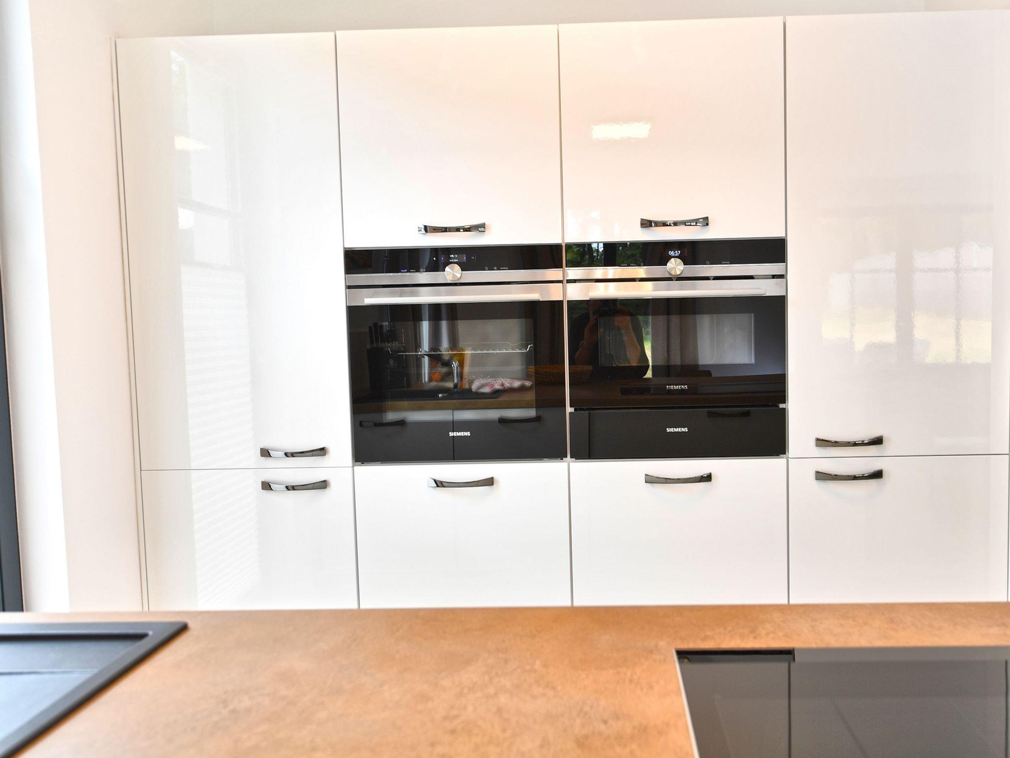 Harmonisch in das Wohnzimmer integriert sind der Essbereich und der Hochglanz-Küchenblock. Voll ausgestattet mit Markengeräten von Siemens und WMF, können Sie sich hier nach Herzenslust bekochen, wenn Sie nicht gerade in einem der zahlreichen Restaurants im Ort speisen. Auf jeden Fall haben Sie in Ihrer Ferienwohnung mit einer großen Kühl-/Gefrierkombi, einem Geschirrspüler, einem Cerankochfeld, Backofen, Filter-Kaffeemaschine, Toaster sowie Mikrowelle und Wasserkocher beste Bedingungen.