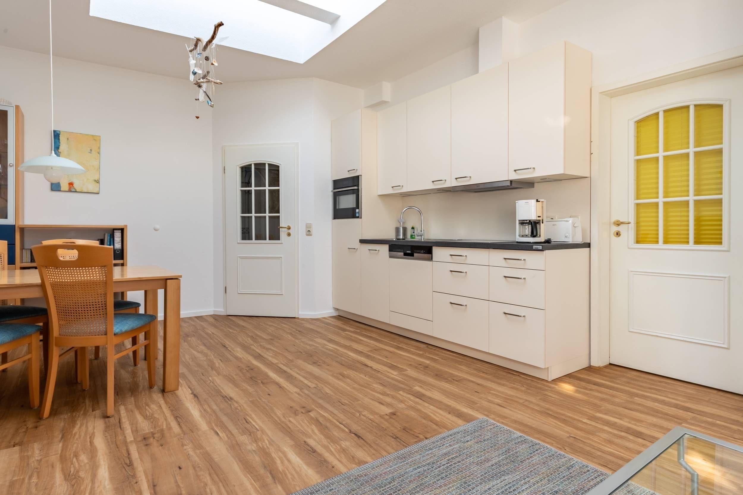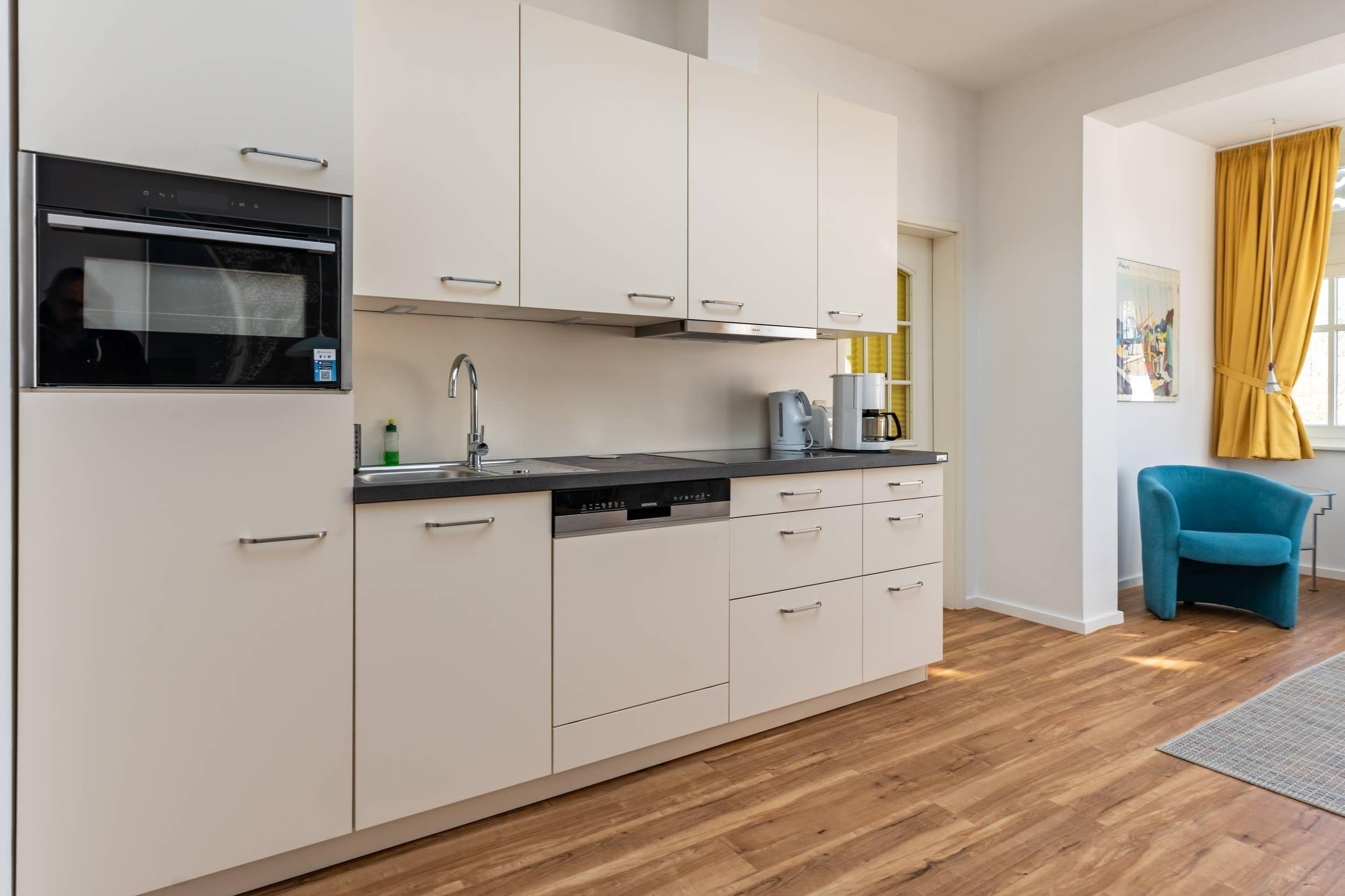 Unser 2- Raum Apartment bietet auf 51 qm Platz für bis zu 4 Personen. Im Wohn/Essbereich ist eine umfangreich ausgestattete Küchenzeile integriert.