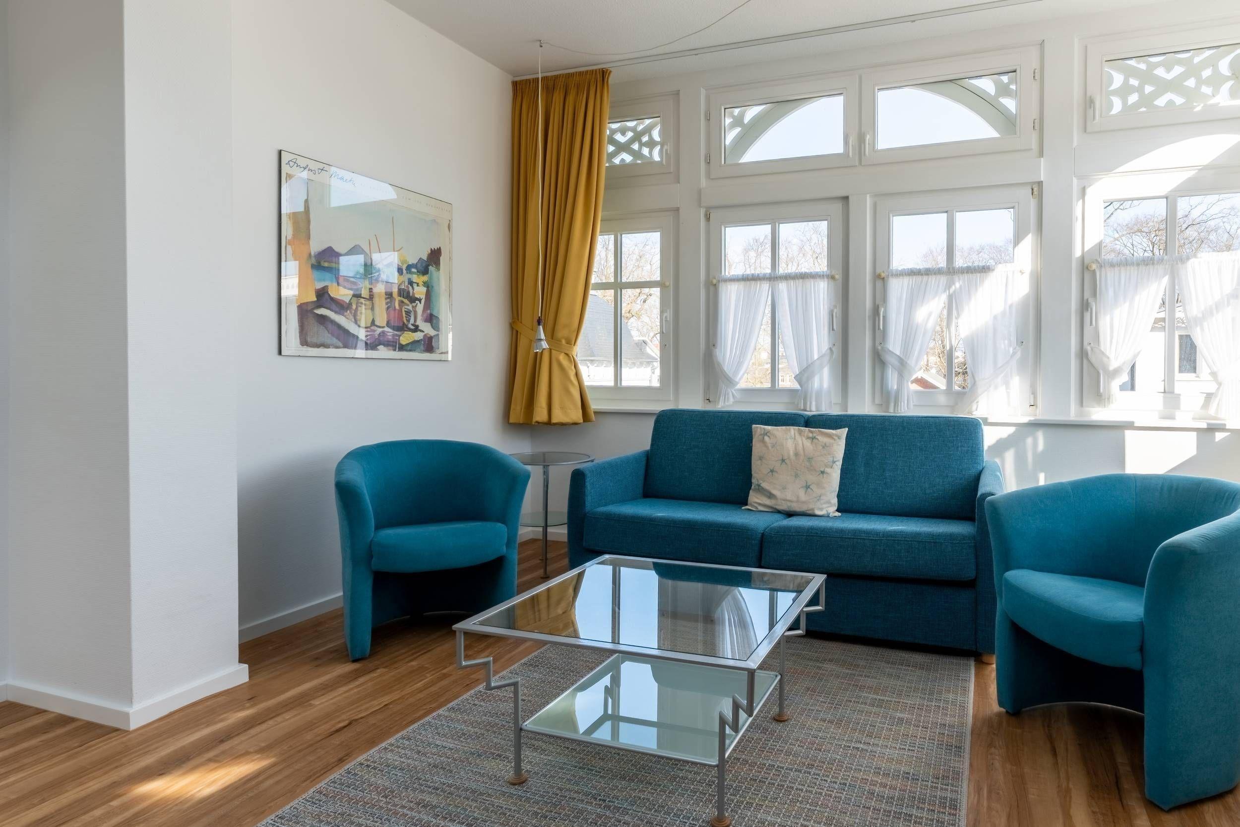 Das lichtdurchflutete Apartment 6 ist für bis zu 4 Personen geeignet. Es hat eine Größe vom 51 qm und befindet sich im 2. OG der Villa Eden in einer der exklusivsten Lagen des Ostseebades Binz. Bis zum schönen Strand sind es nur 300 m.