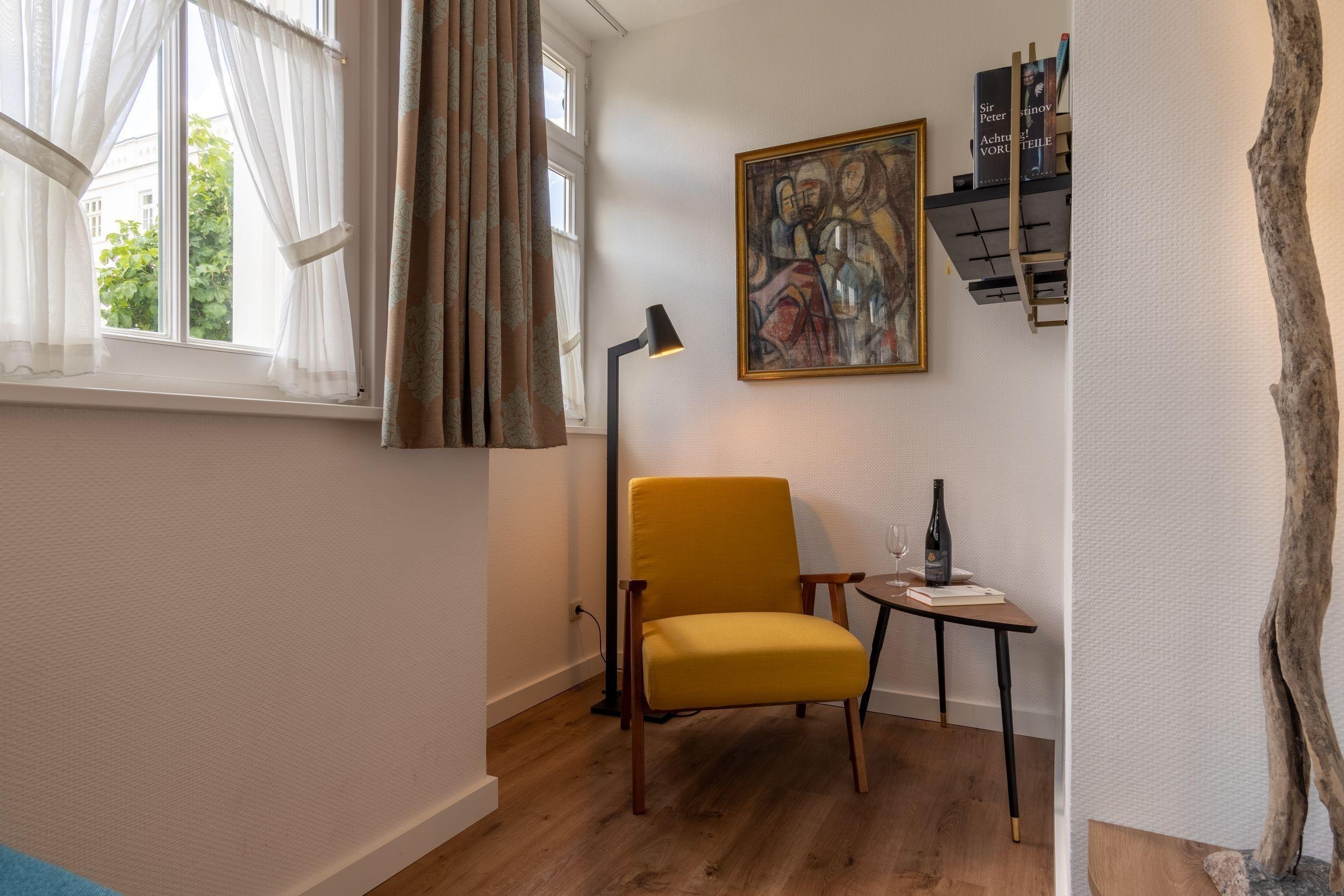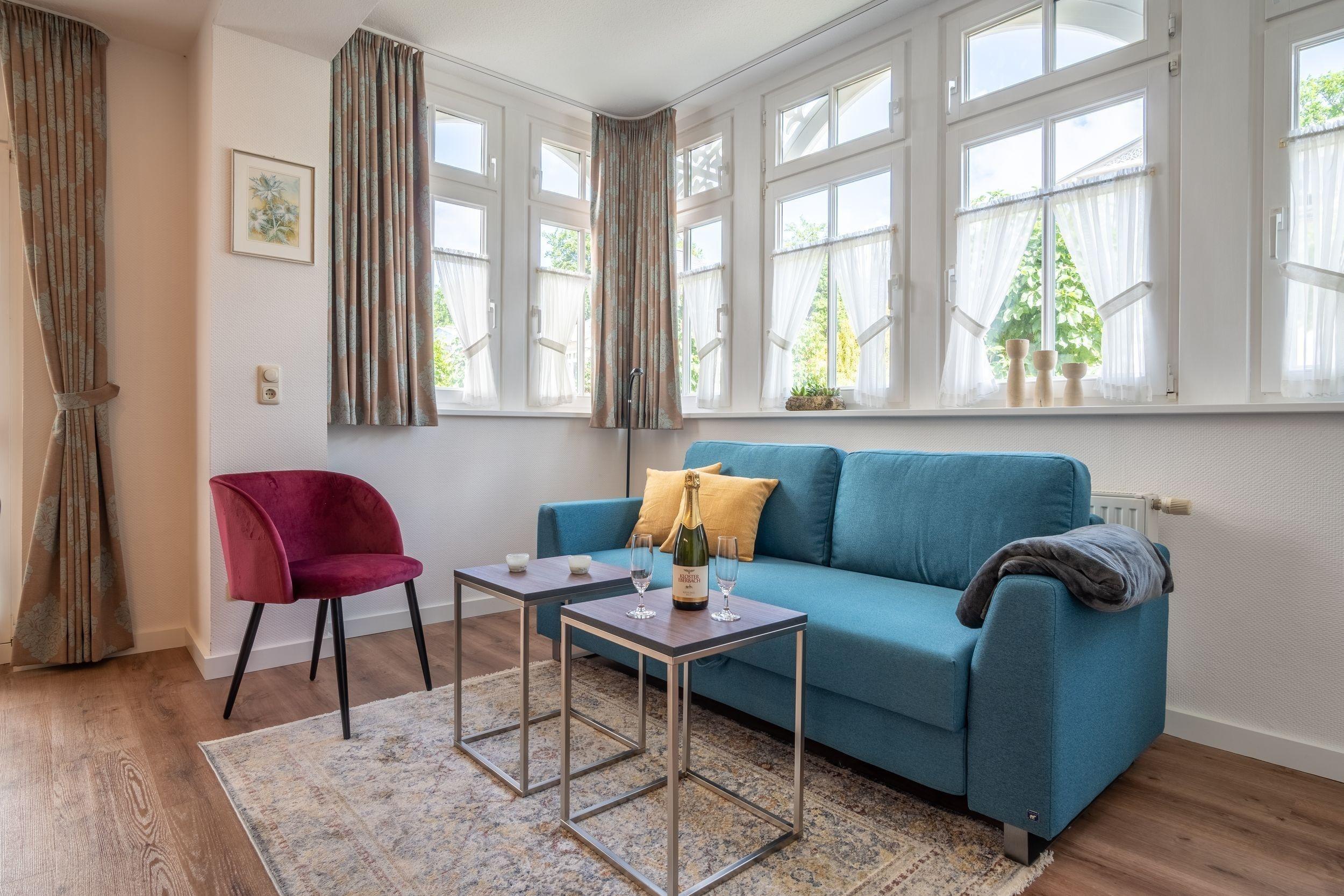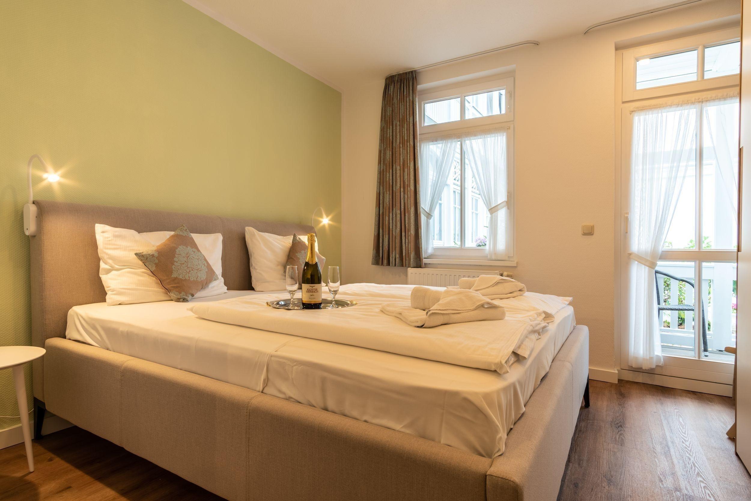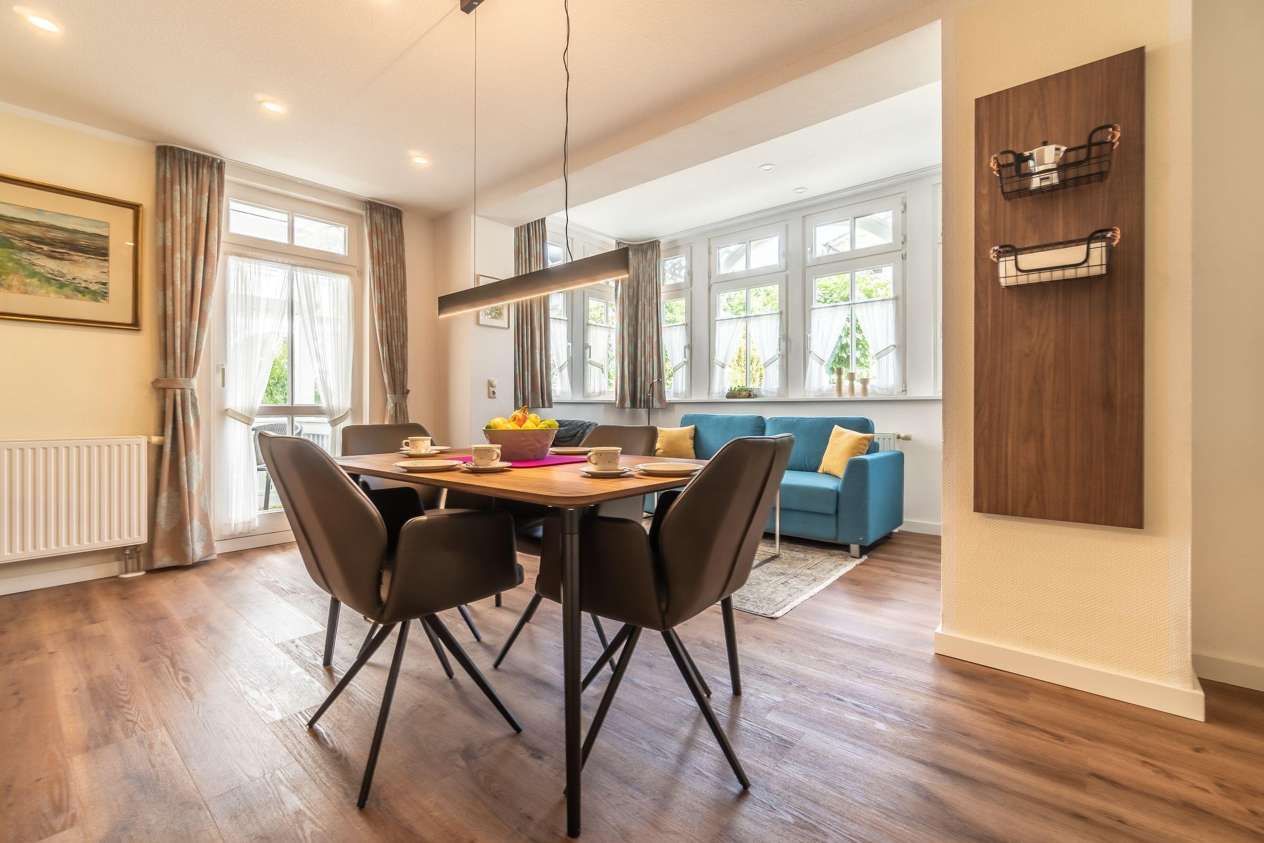 Moderne Ferienwohnung im Erdgeschoss der Villa Eden in Binz, nur 300 m vom Sandstrand und mit Balkon für 4 Gäste.