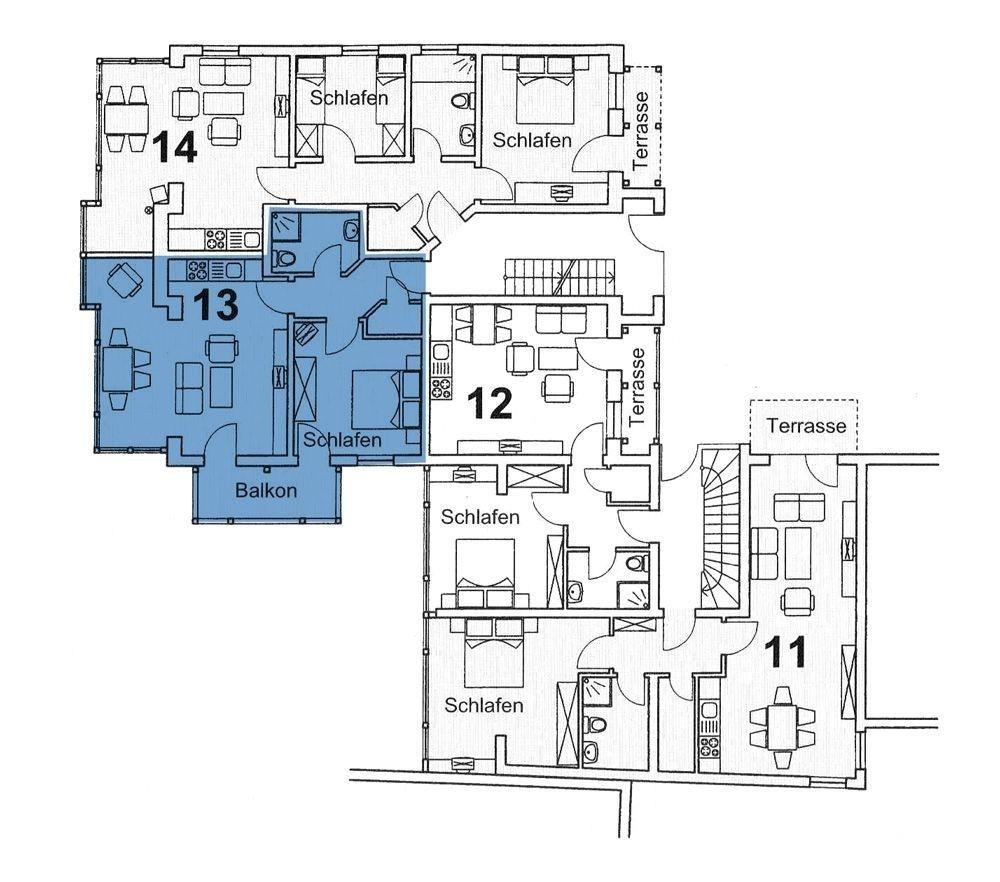 Den Balkon erreichen Sie über den Wohnbereich und dem Schlafzimmer.