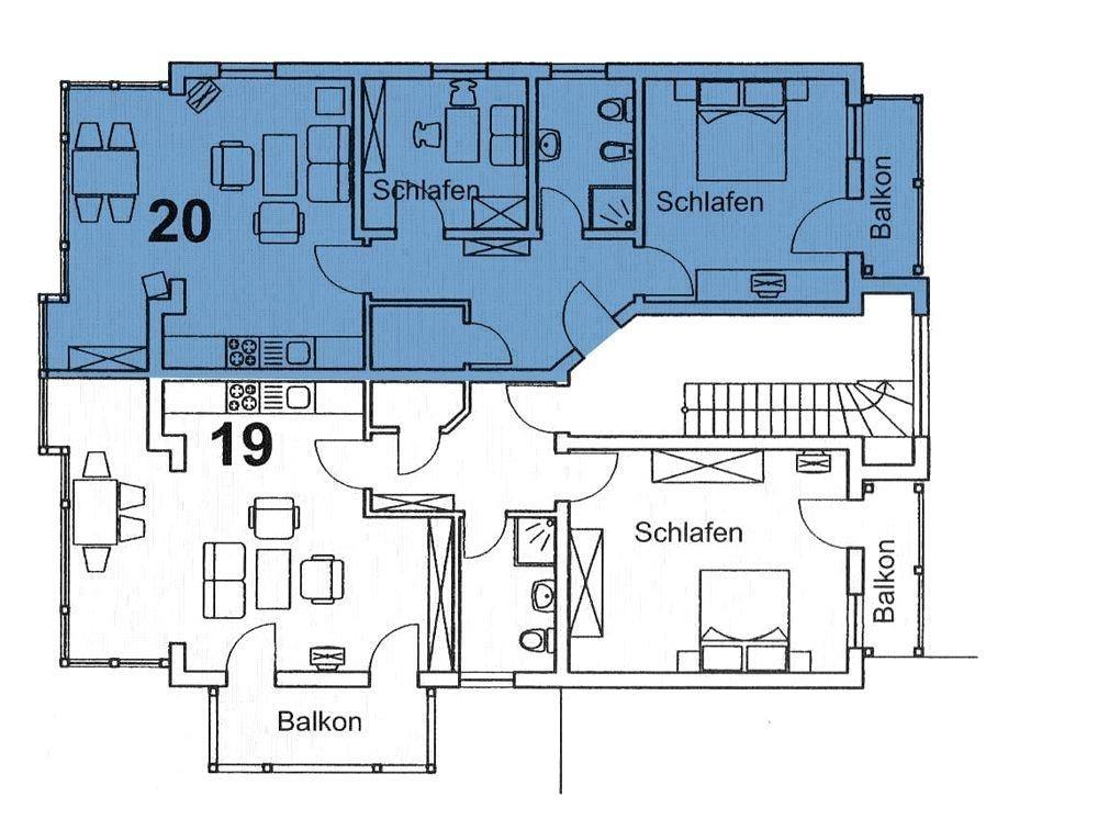 Herzlich willkommen in Deinem Urlaubsdomizil! Die Wohnung 20 besticht durch ein offenes, modernes Raumkonzept. Der großzügige Wohnbereich ist mit einer gemütlichen Sitzecke und einem großen Smart-TV ausgestattet – ideal für entspannte Stunden nach einem Tag am Meer. Dank der Lage im Dachgeschoss genießt Du hier eine besonders private Atmosphäre und viel Tageslicht.