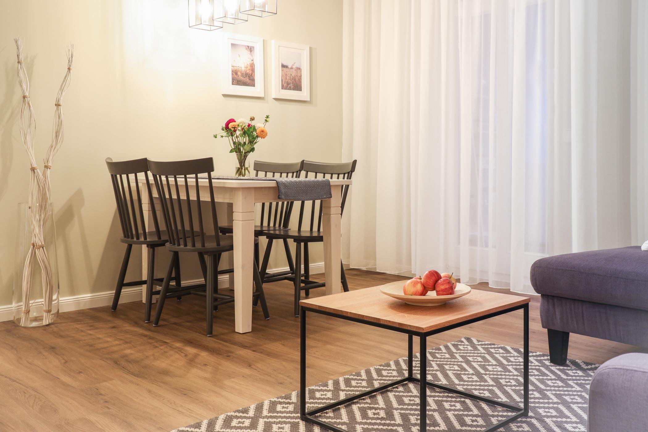Moderne Ferienwohnung im historischen Binz mit Fitnessraum, Sauna und Vollausstattung für erholsame Urlaubstage.