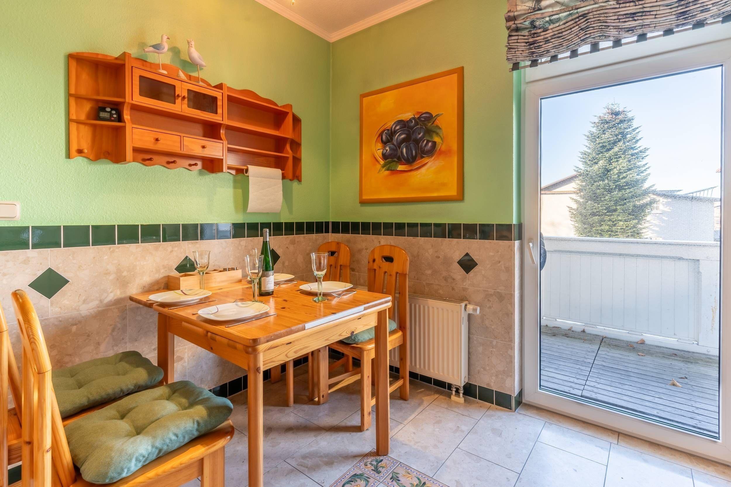 Die Ferienwohnung Poseidon in Binz bietet rustikal-mediterranen Stil, Balkon und WLAN für einen entspannten Urlaub auf Rügen.
