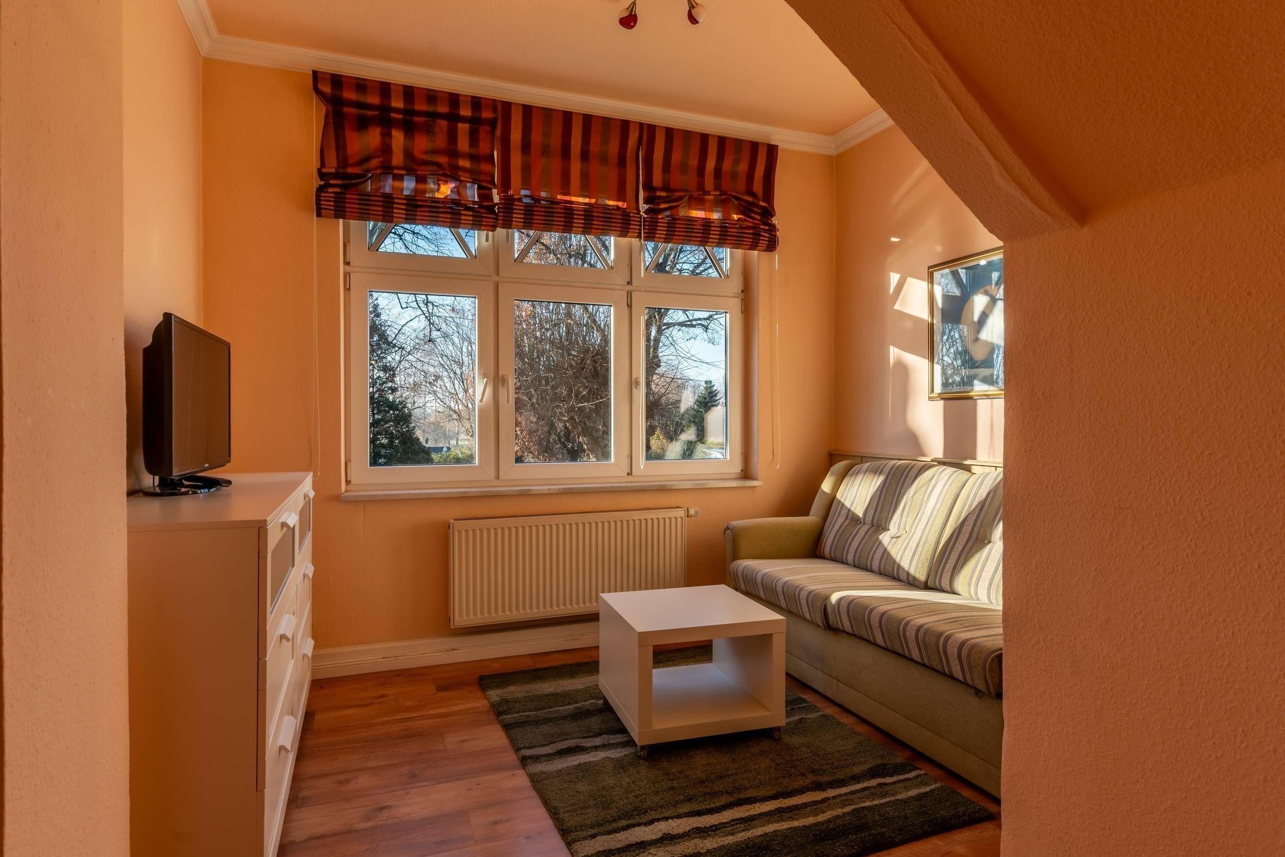 Die Ferienwohnung Poseidon in der Villa Venske in Binz bietet auf 70 Quadratmetern ein komfortables Zuhause in einem rustikal-mediterranen Stil. Direkt gegenüber dem Kleinbahnhof gelegen, eignet sich diese charmante Unterkunft ideal für einen entspannten Aufenthalt auf der Insel Rügen. Mit einem großzügigen Wohnbereich, einem Schlafzimmer mit Doppelbett und einem weiteren Schlafzimmer mit einer Schlafcouch, bietet sie Platz für bis zu vier Personen. Babyreisebett und Hochstuhl können bei Bedarf für jeweils 10,00 € pro Woche gemietet werden, so dass ein Baby als 5. Person hinzu gebucht werden kann.