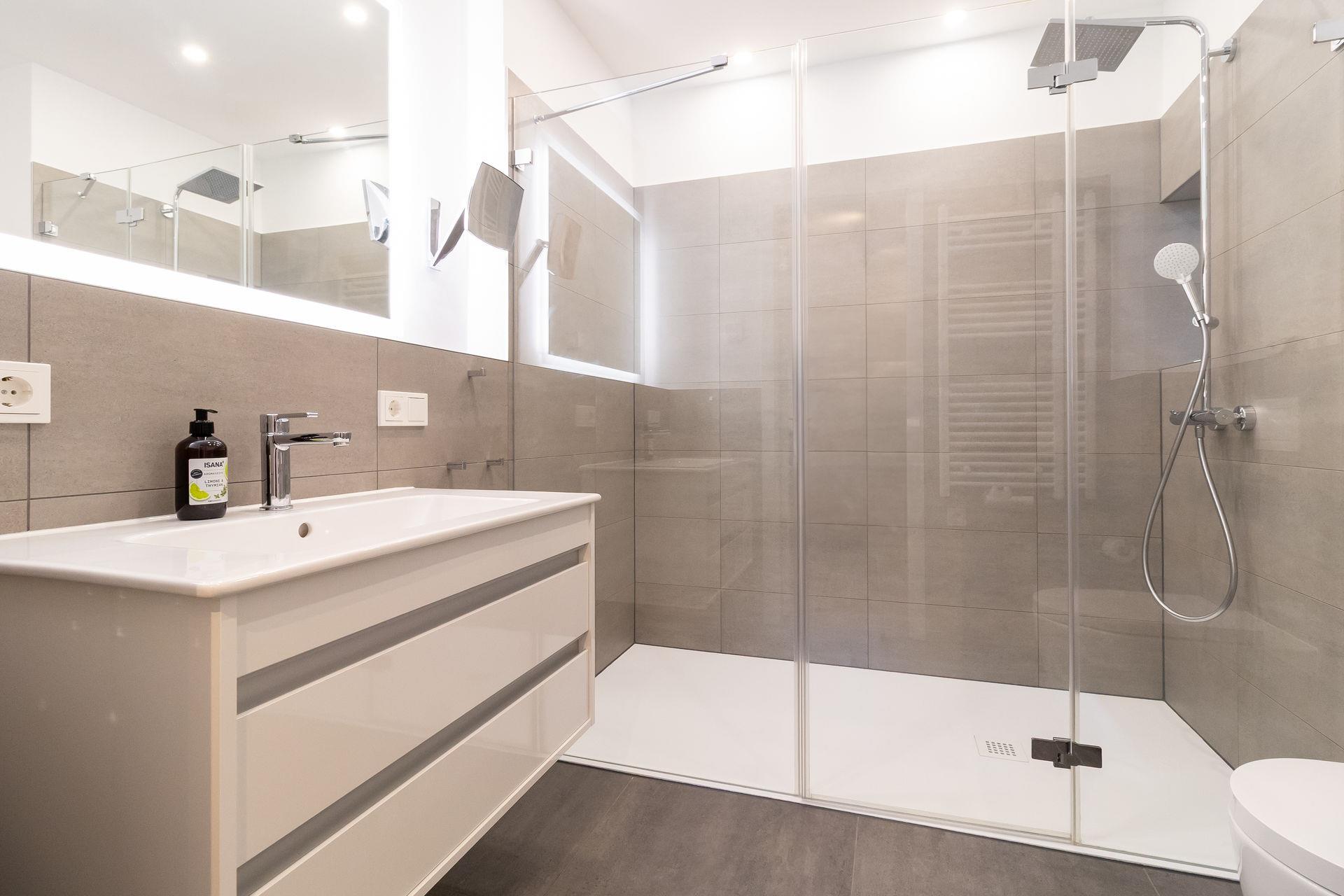 Vom Wohnhzimmer aus kommen Sie in zwei geräumige Schlafzimmer mit jeweils einem Fernseher. Von einem der Schlafzimmer aus haben Sie Zugang zum großen Hauptbadezimmer, dass über eine große moderne Dusche verfügt. Beide Schlafzimmer haben Fenster auf der Seeseite, sodass Sie von beiden Zimmern aus das Meeresrauschen hören und genießen können. Insektenschutzgitter ermöglichen auch im Sommer offene Fenster ohne Mückenstiche :-)
