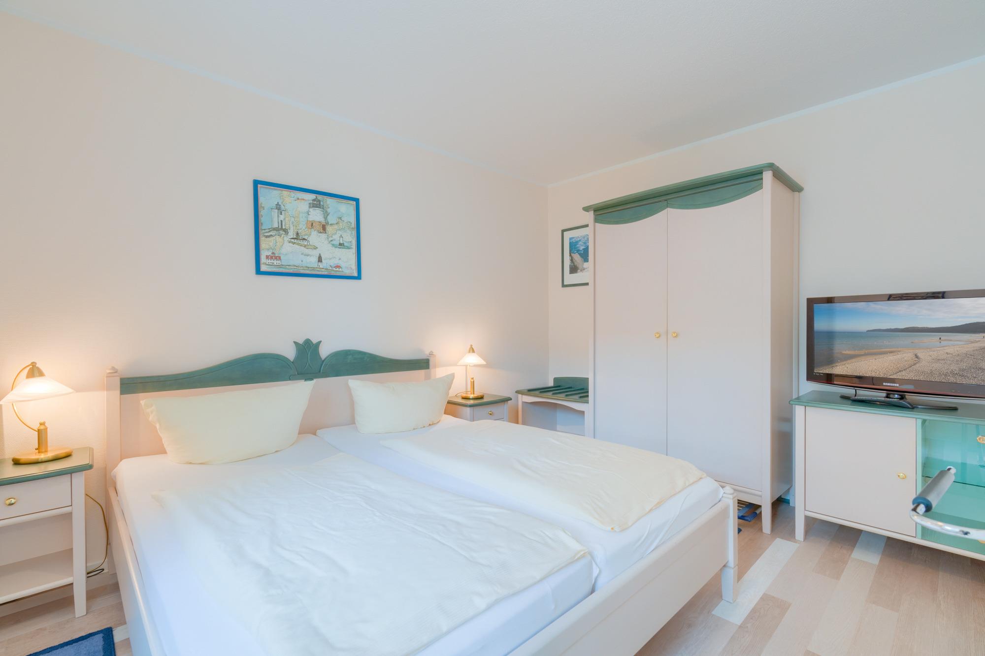 Im Schlafzimmer bietet Ihnen ein Doppelbett ausreichend Platz für einen erholsamen Schlaf. Ihre Urlaubskleidung können Sie im geräumigen Kleiderschrank unterbringen.