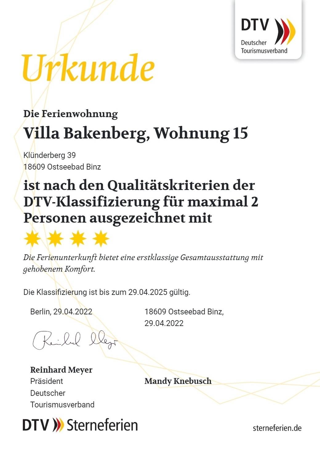 Die 48 m ² große und mit 4 DTV Sternen klassifizierte Ferienwohnung 15 befindet sich im 1. Obergeschoss in der Villa Bakenberg. Sie bietet mit ihren zwei Zimmern ausreichend Platz für 2 Personen. (2 weitere Personen sind zusätzlich möglich)