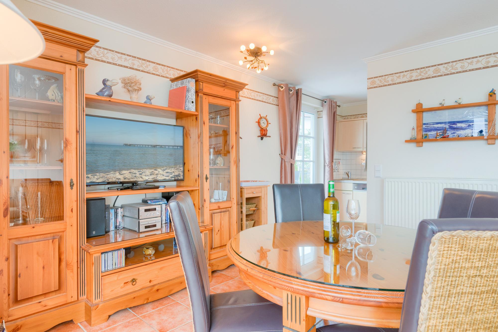 Fühlen Sie sich wohl im gemütlich und mit viel Liebe zum Detail ausgestatteten Wohnbereich! Dazu tragen unter anderem eine bequeme Polstergarnitur als auch Dinge wie LED-TV, DVD-CD-Player, viele CDs, DVDs und Bücher, Spiele bei.