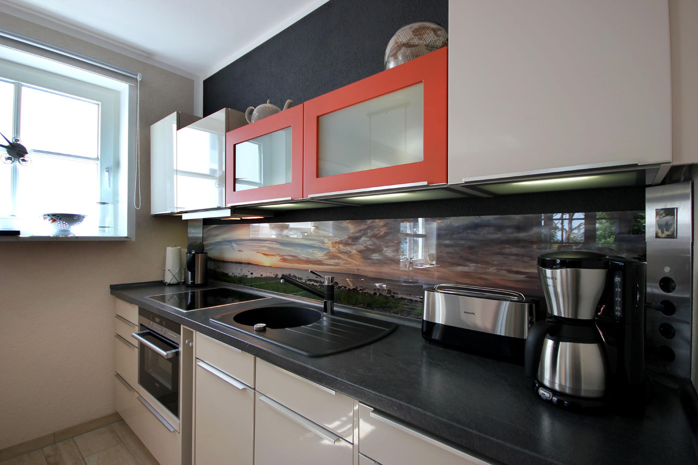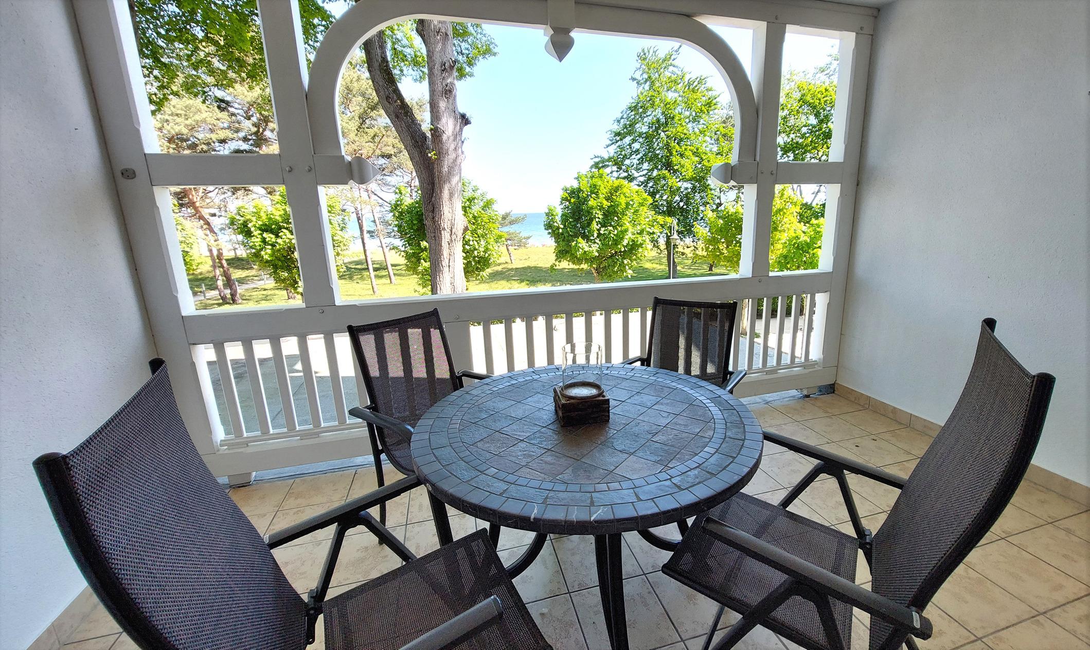 Die attraktive Nichtraucherwohnung 213RB27 Strand-Rose ist ca. 60 qm groß und für bis zu 4 Personen komplett eingerichtet. Vom modernen Wohnzimmer sowie vom überdachten Balkon mit dazugehörigen Möbeln genießen Sie einen direkten Panoramablick auf die Ostsee. Die mit Liebe zum Detail ausgestattete 2-Raumwohnung bereitet durch seine hochwertige und moderne Ausstattung einen besonders angenehmen Aufenthalt. Dieses schöne Appartement gliedert sich auf in einen stilvoll eingerichteten Flur mit Garderobe, einen gemütlichen Wohnraum mit direktem Zugang zum Balkon, eine Küchenzeile, ein Schlafzimmer und ein Tageslichtbad mit Dusche, Waschtisch, WC und Fön. Das Wohnzimmer ist mit einem Essplatz und einer bequemen Sitzgruppe, die auch eine zusätzliche Schlafmöglichkeit für zwei weitere Personen bietet, möbliert. Die technische Ausstattung umfasst einen großen Smart-TV samt Soundanlage, ein Radio sowie einen kostenfreien WLAN-Zugang. Die Küchenzeile erwartet Sie mit einem Geschirrspüler, Cerankochfeld, Backofen, Kühlschrank mit kleinem Gefrierfach, Mikrowelle, Kaffeemaschine, Toaster, Wasserkocher und weiteren Küchenhelfern. Das Schlafzimmer verfügt über ein gemütliches Doppelbett sowie einen geräumigen Kleiderschrank und ein zusätzliches Verdunklungsrollo für eine angenehme Nachtruhe. Ein wohnungseigener Parkplatz steht Ihnen direkt hinterm Haus zur Verfügung.