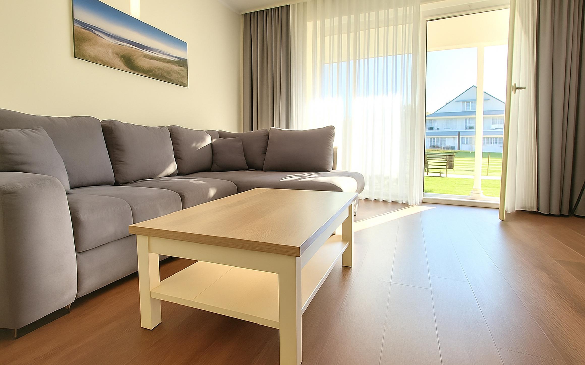 Die 2-Raum-Nichtraucherwohnung 16RB15 befindet sich im Erdgeschoß des Gebäudes Düne 3. Mit einer Größe von 61 qm bietet sie Platz für bis zu 4 Personen.