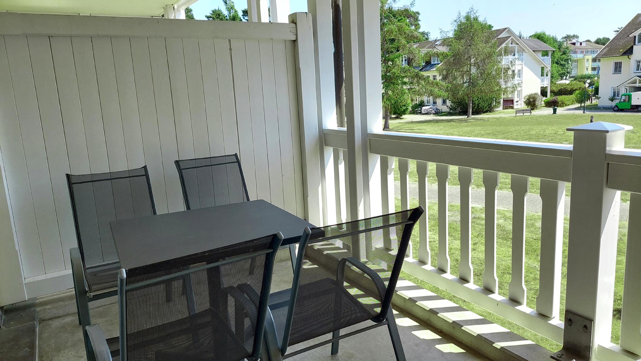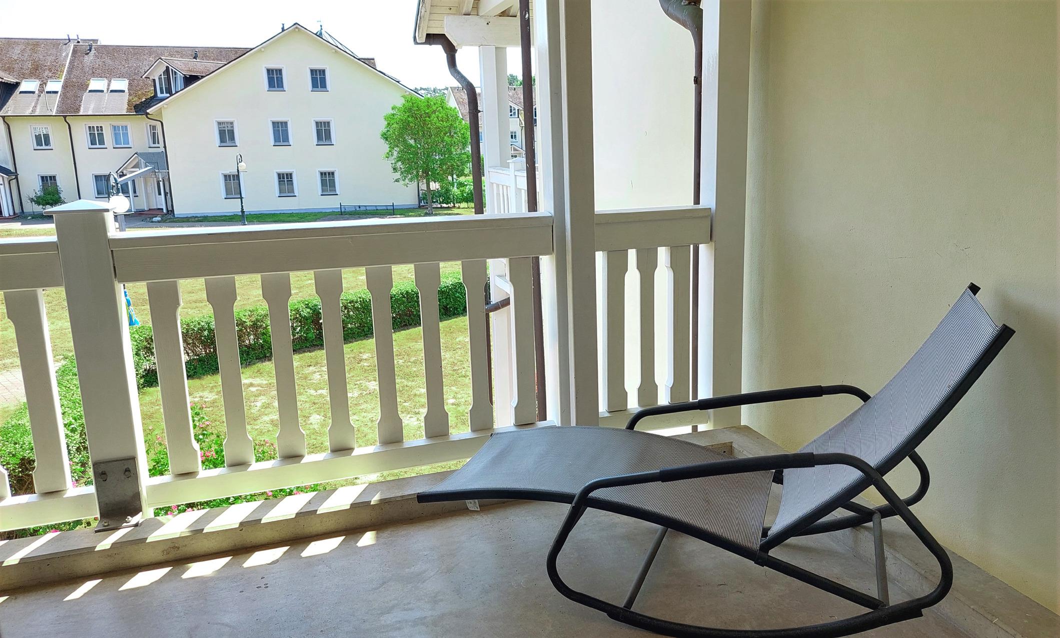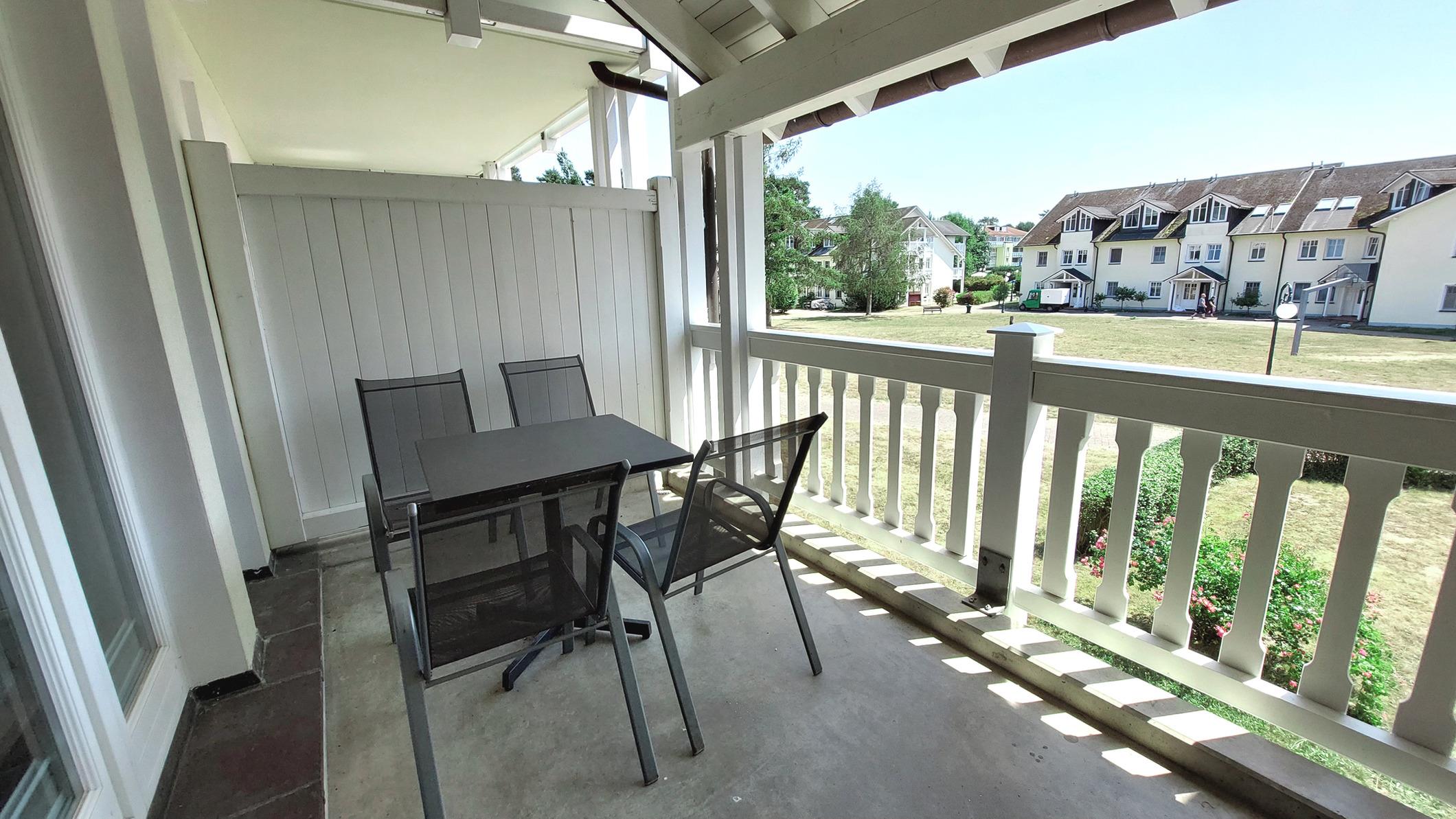 Sie liegt an einer ruhigen Straße und hat einen überdachten Balkon in den Dünenparkinnenhof.