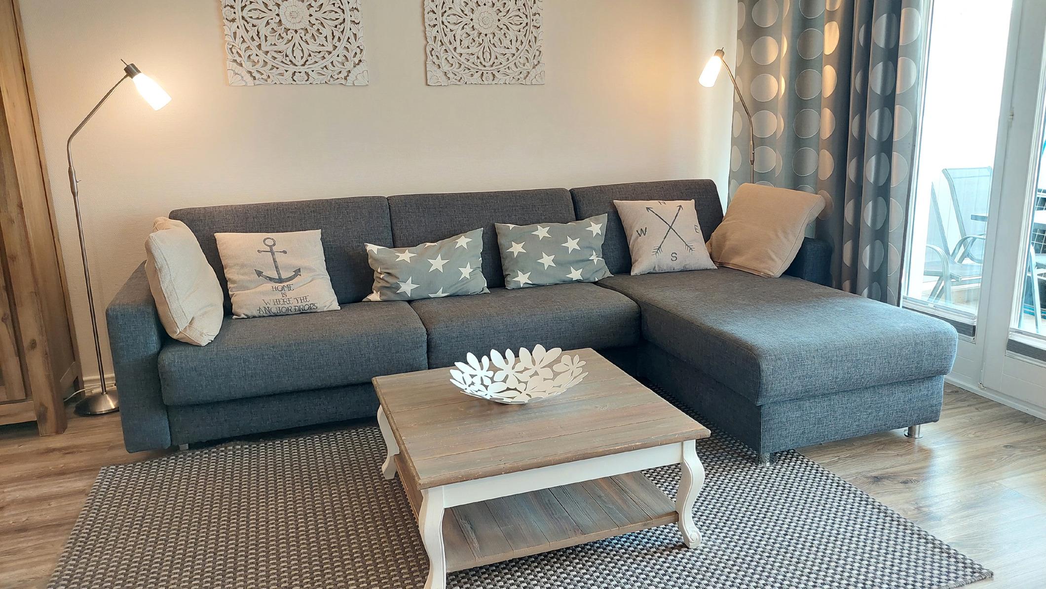 Die moderne 2-Raum-Nichtraucherwohnung 16RB17 befindet sich im Außenring des Dünenparks (Hauseingang 2).