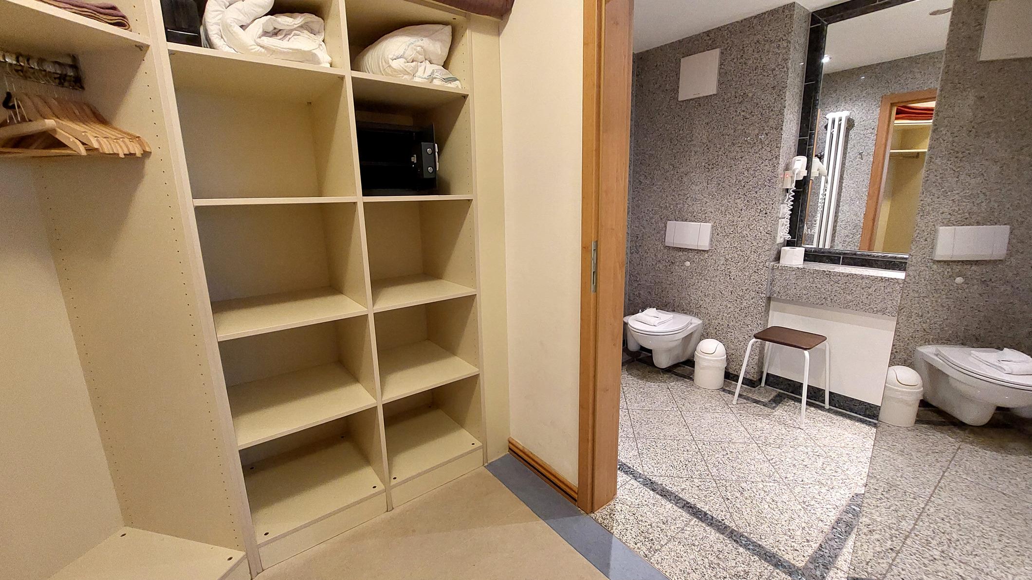 Im Schlafzimmer finden Sie ein Doppelbett, eine Kommode sowie ein separates Ankleidezimmer mit Kleiderschrank, Safe und zusätzlichem Badzugang.