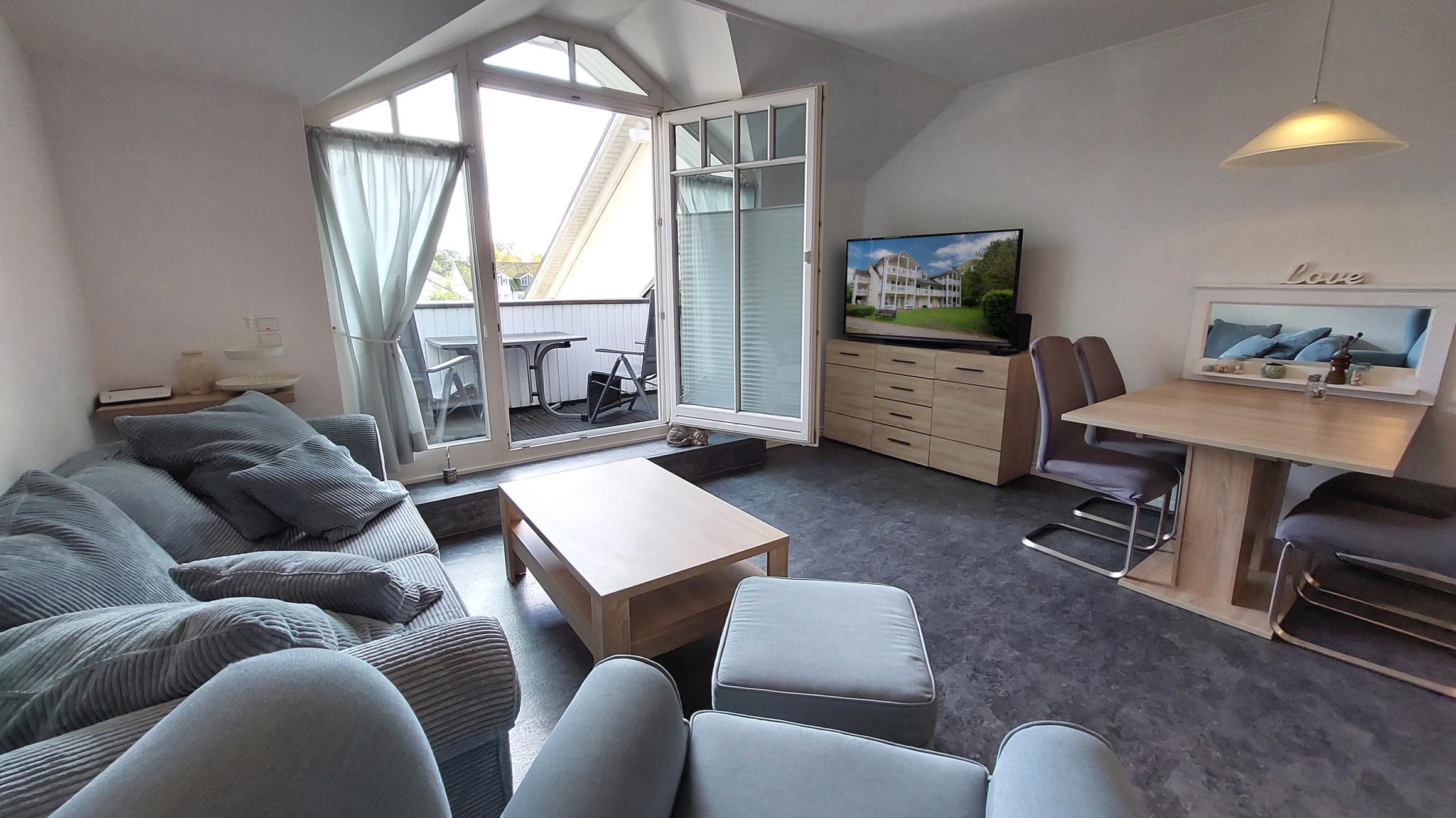 Der Esstisch samt Sitzgelegenheiten für 4 Personen und eine gemütliche Sitzlandschaft laden zum Verweilen ein.