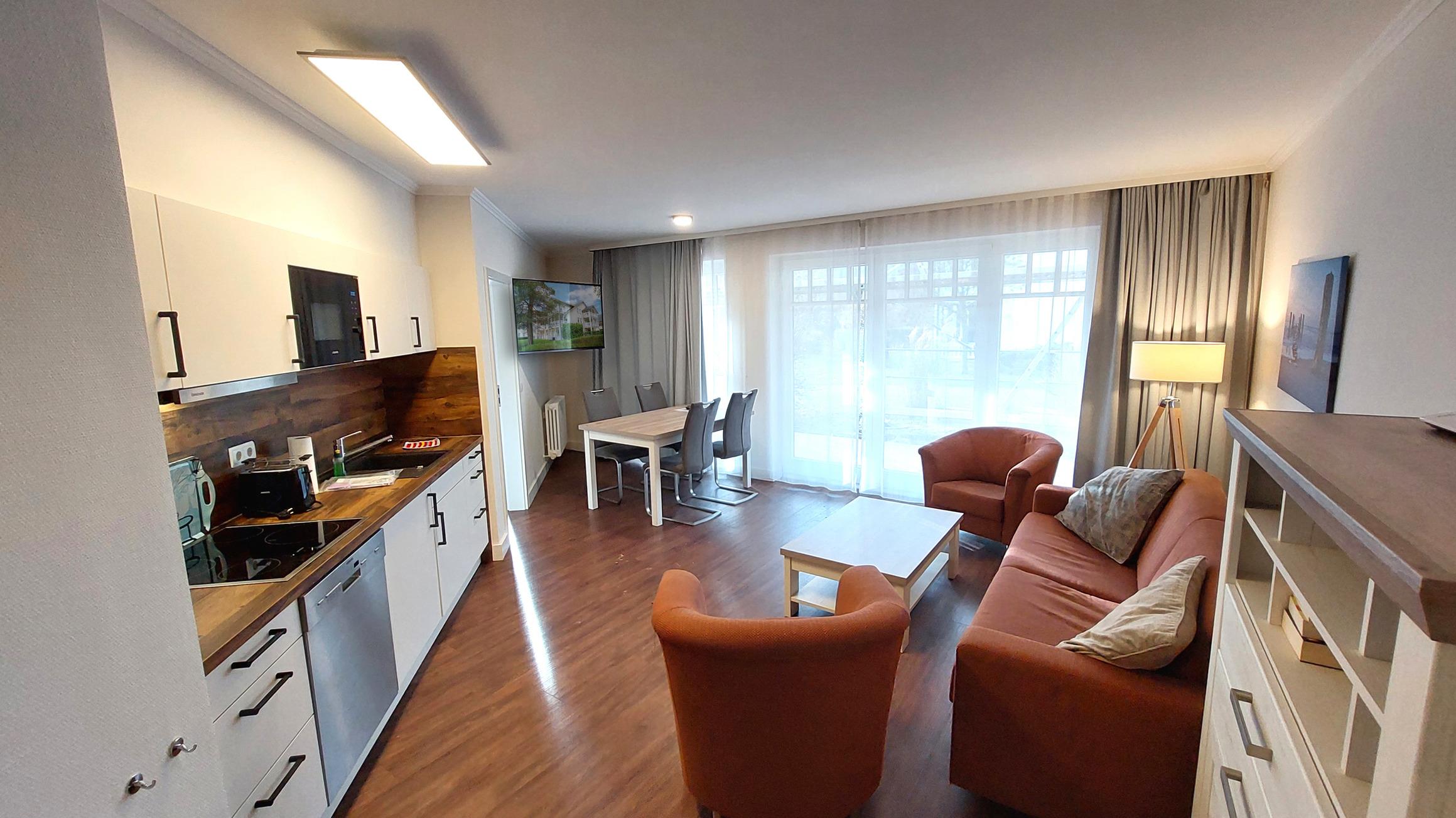 Die 2-Raum-Nichtraucherwohnung 16RB62 befindet sich im Erdgeschoß des Gebäudes Düne 8. Mit einer Größe von 59 qm bietet sie Platz für bis zu 4 Personen.