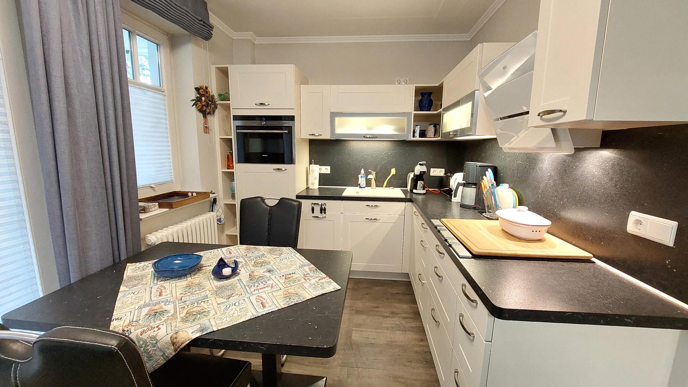 Angrenzend finden Sie den offenen Koch- und Essbereich, welcher auch im Urlaub zum Kochen einlädt. Die Küchenzeile ist ausgestattet mit Cerankochfeld, Backofen, Geschirrspüler, Kühlschrank mit Gefrierfach sowie vielen nützlichen Küchenhelfern.