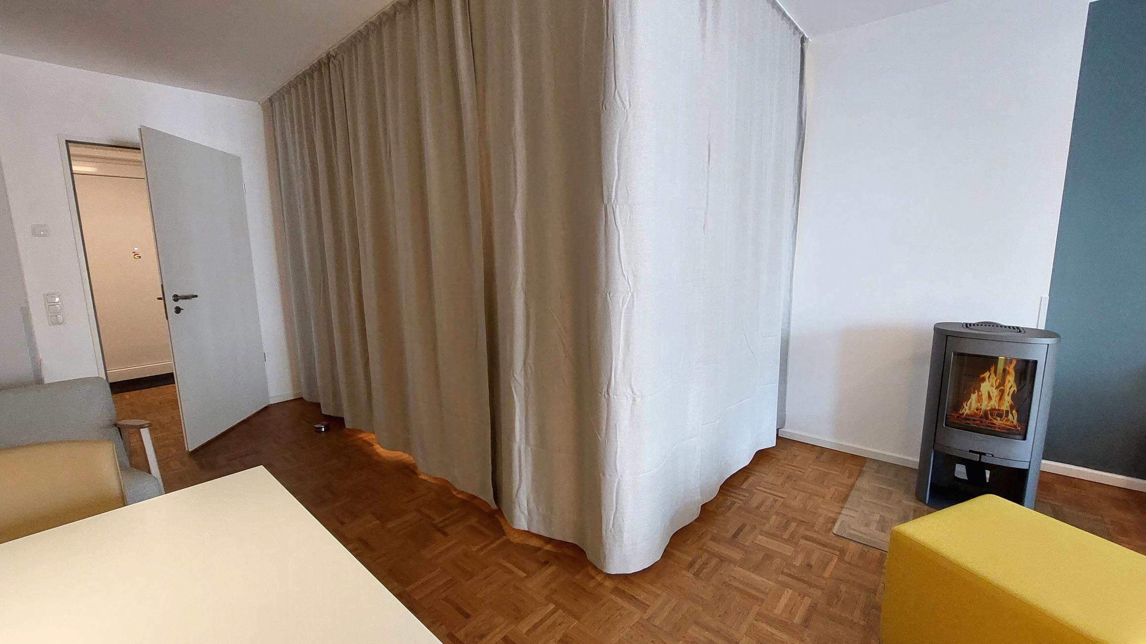 Eine hochwertiges Schrankbett samt blickdichter Vorhänge machen dies möglich.