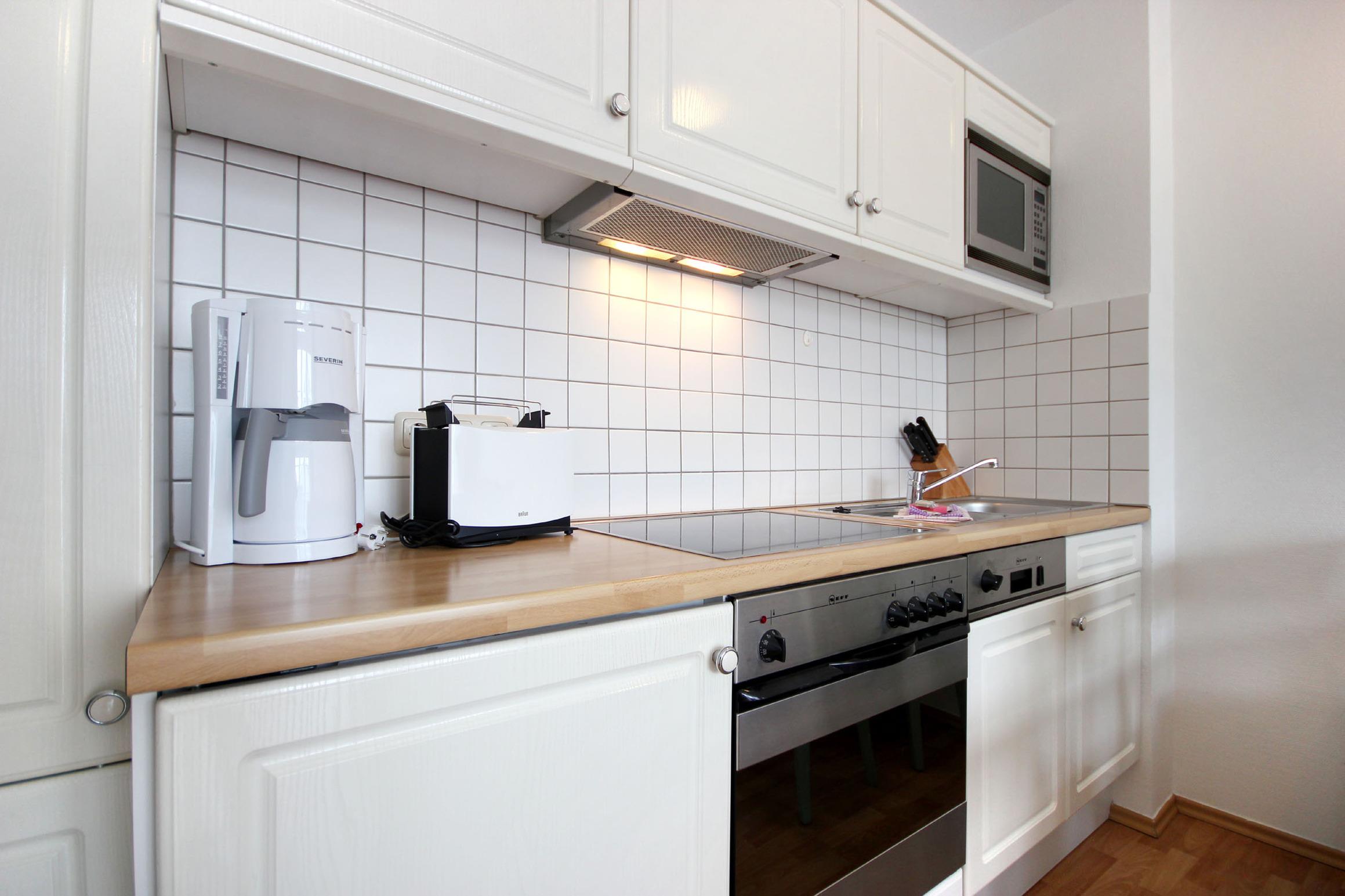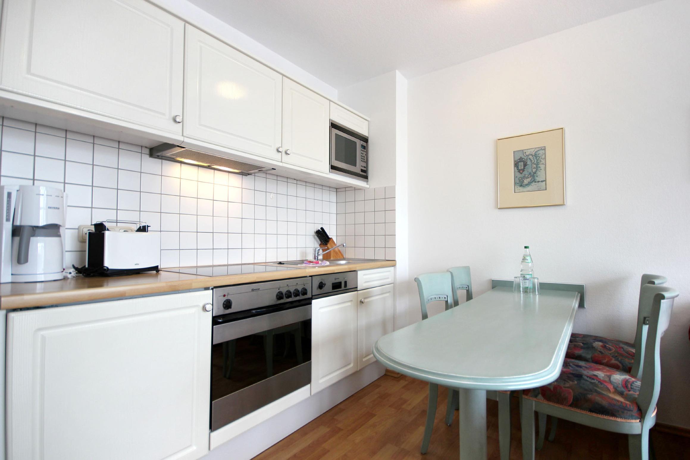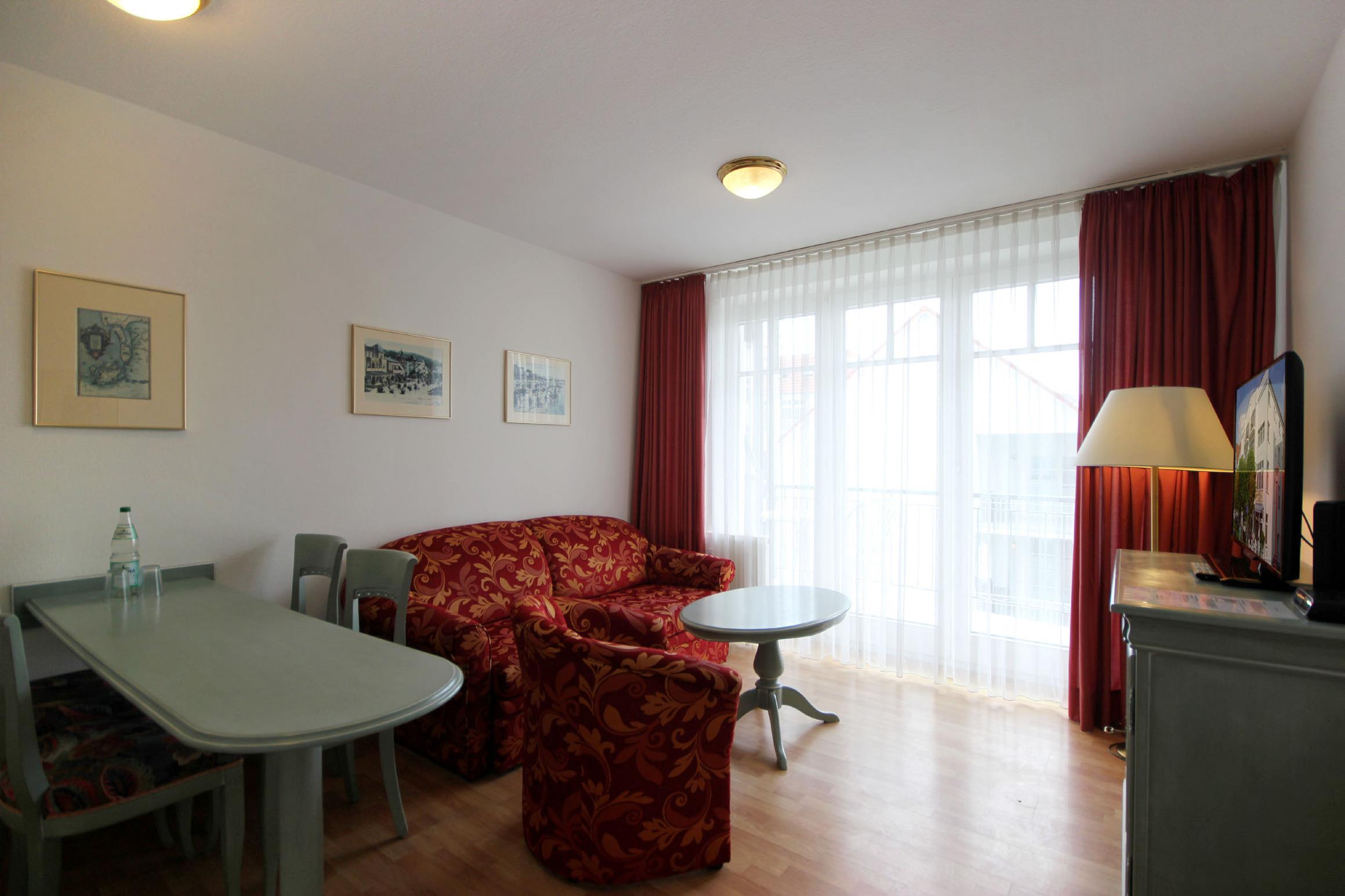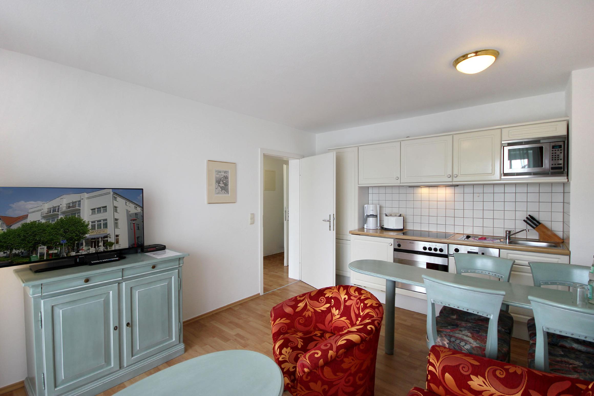 Ihre 2-Zimmerwohnung 23RB17 hat eine Größe von ca. 40 qm und ist für 2 Personen eingerichtet. Sie befindet sich im 2. Obergeschoss und verfügt über einen Balkon in Richtung Ostsee, welcher zum Frühstücken einlädt. Dem Wohnraum schließt sich die Wohnküche und der Balkon an. Im separaten Schlafraum finden Sie ein Doppelbett und einen Kleiderschrank. Vom vorgelagerten Flur aus erreichen Sie das Duschbad mit Waschtisch und WC. Im Wohnraum gibt es einen Essbereich und eine gemütliche Sitzecke mit Sessel sowie einem Fernseher, ein Radio und einen kostenfreien W-Lan-Zugang. Die Küche verfügt über einen Backofen, eine Mikrowelle, Cerankochfeld, Kühlschrank, Geschirrspüler, Kaffeemaschine, Toaster und Wasserkocher. Ein PKW-Stellplatz steht Ihnen auf dem Parkplatz "Zentrum" (ca. 8 Gehminuten) zur Verfügung. Haustiere sind in dieser Wohnung nicht erlaubt.