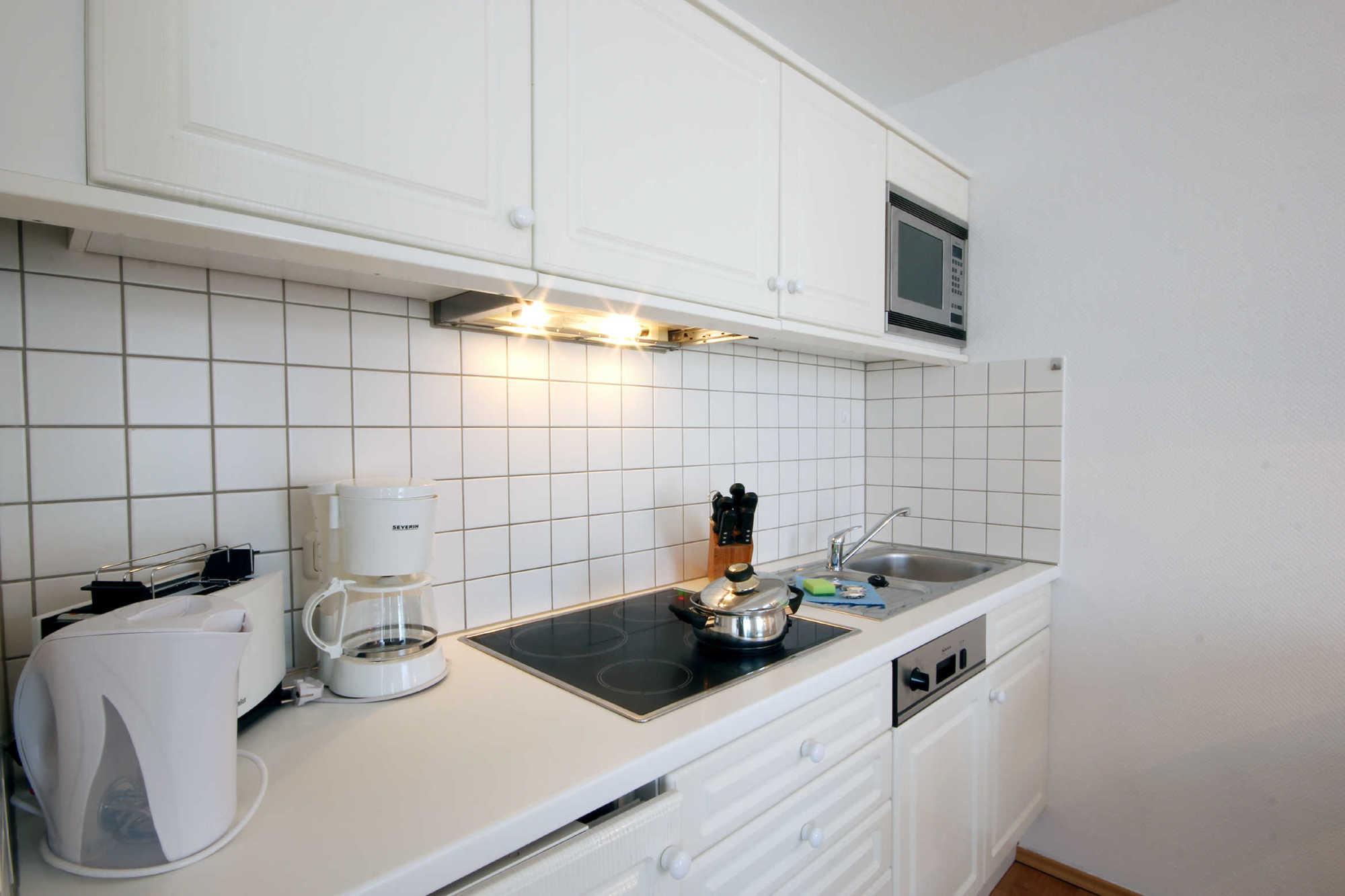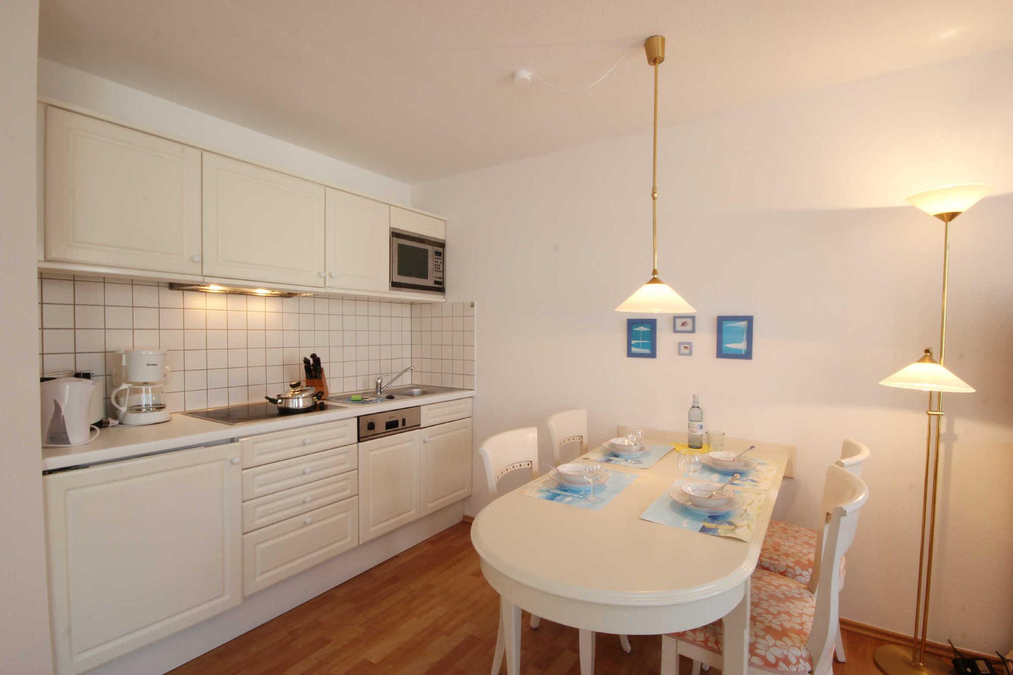 Dem kombinierten Wohn- Schlafraum schließt sich eine Küchenzeile und der Balkon an. Vom vorgelagerten Flur aus erreichen Sie das geräumige Duschbad mit Waschtisch, Handtuchheiztrockner und WC. Im Wohn-Schlafraum finden Sie neben einer Sitz- und einer Essecke ein Doppelbett, ein Flachbild-TV und einen kostenlosen WLAN-Zugang. Die Küche verfügt u.a. über Geschirrspülmaschine, Mikrowelle Kühlschrank, Kaffeemaschine, Toaster, Wasserkocher und diverse andere Küchenhelfer. Im Flur finden Sie einen geräumigen Kleiderschrank. Ihr Vierbeiner ist hier Herzlich Willkommen! Ein kostenloser PKW-Stellplatz steht Ihnen auf dem Parkplatz "Zentrum" (ca. 400 m vom Objekt entfernt) während Ihres Aufenthaltes zur Verfügung.