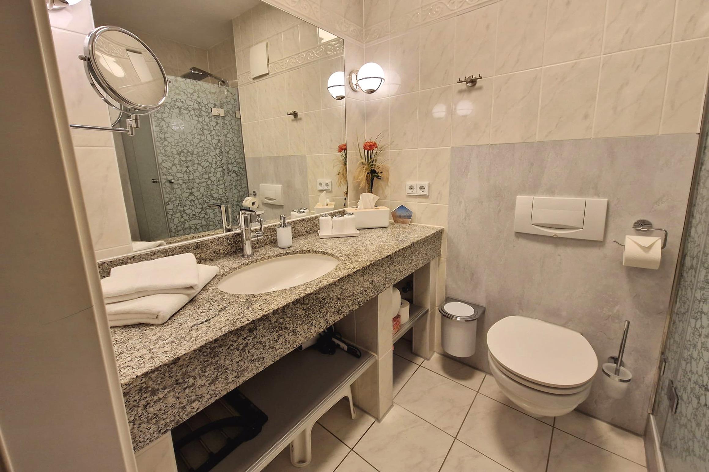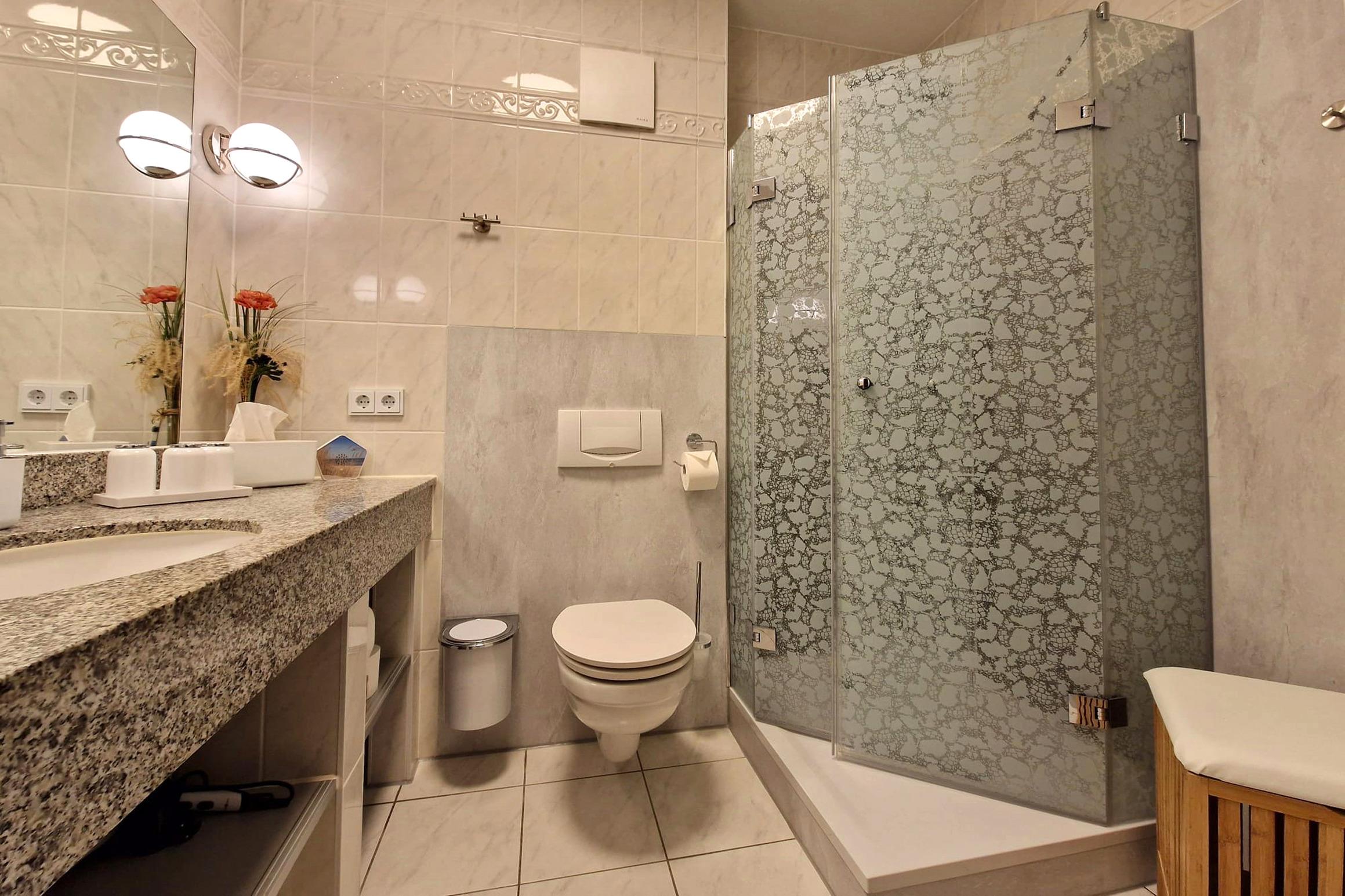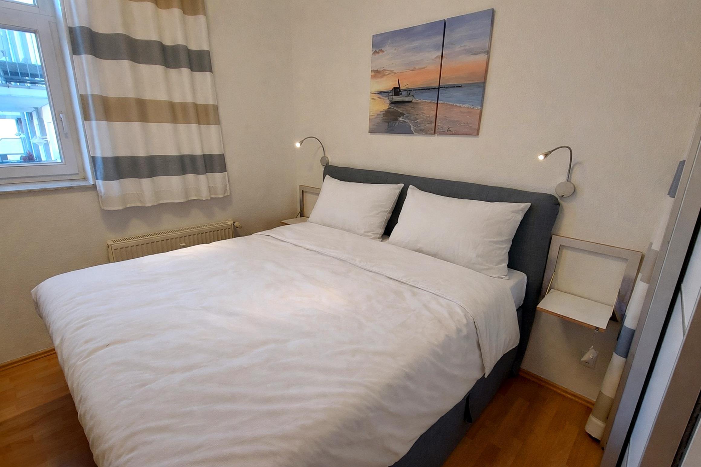 Dem gemütlichen Wohnraum schließt sich die Wohnküche und der Balkon an. Im separaten Schlafraum finden Sie ein Boxspringbett sowie einen Kleiderschrank. Vom vorgelagerten Flur aus erreichen Sie das helle Bad mit Waschbecken, Kosmetikspiegel, Dusche/WC und Fön. Im Wohnraum gibt es einen separaten Essbereich, eine gemütliche Sitzecke mit Schlaffunktion sowie einen Smart-TV und einen kostenfreien WLAN-Zugang. Die Küche verfügt über einen Backofen, eine Mikrowelle, Cerankochfeld, Kühlschrank mit Gefrierfach, Geschirrspüler, Kaffeemaschine, Toaster, Wasserkocher und diverse andere “Küchenhelfer”. Ein PKW-Stellplatz steht Ihnen in unmittelbarer Nähe zur Verfügung.