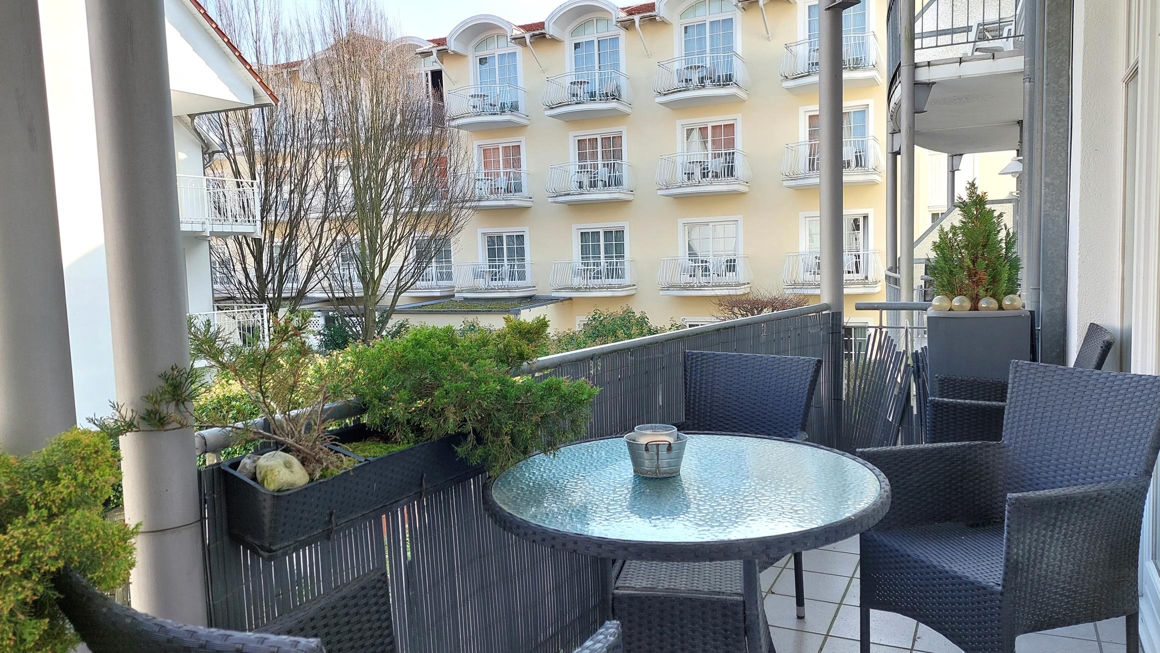 Das Apartment ist bequem per Fahrstuhl erreichbar und verfügt über einen Frühstücksbalkon Richtung Ostsee.