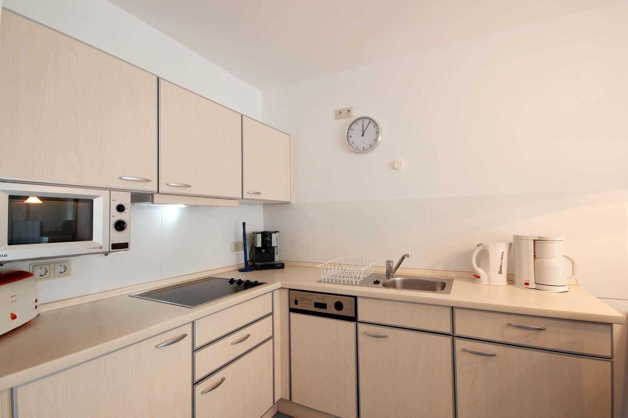 Die 2. Raumwohnung 90403 befindet sich im Erdgeschoß und hat eine Größe von 45 qm. Der Wohnbereich teilt sich auf in Sitzgruppe mit Smart-TV, DVD-Player, Videorekorder und Musikanlage, sowie Küchenzeile mit Geschirrspüler, Mikrowelle, Mini-Backofen Espressoautomat und diversen elektrischen Kleingeräten. Ein Essplatz trennt den Küchen- vom Wohnbereich. Die gemütliche Sitzgruppe kann zur Doppelbettcouch umgebaut werden und dient im Bedarfsfall für 2 Personen als Schlafgelegenheit. Weiterhin verfügt das Appartement über ein Schlafzimmer mit Doppelbett und zusätzlichem TV. Ein Badezimmer mit Waschtisch, Dusche und WC ist ebenfalls vorhanden. Ab sofort können unsere Gäste einen kostenfreien Internetzugang nutzen. Im Keller des Hauses befindet sich eine Sauna, sowie ein Abstellraum für Fahrräder oder Kinderwagen. Ihren PKW können Sie im nur 100 m entfernten Parkhaus abstellen.