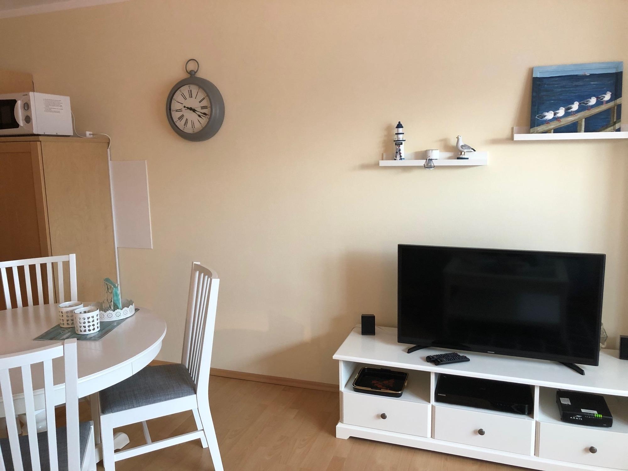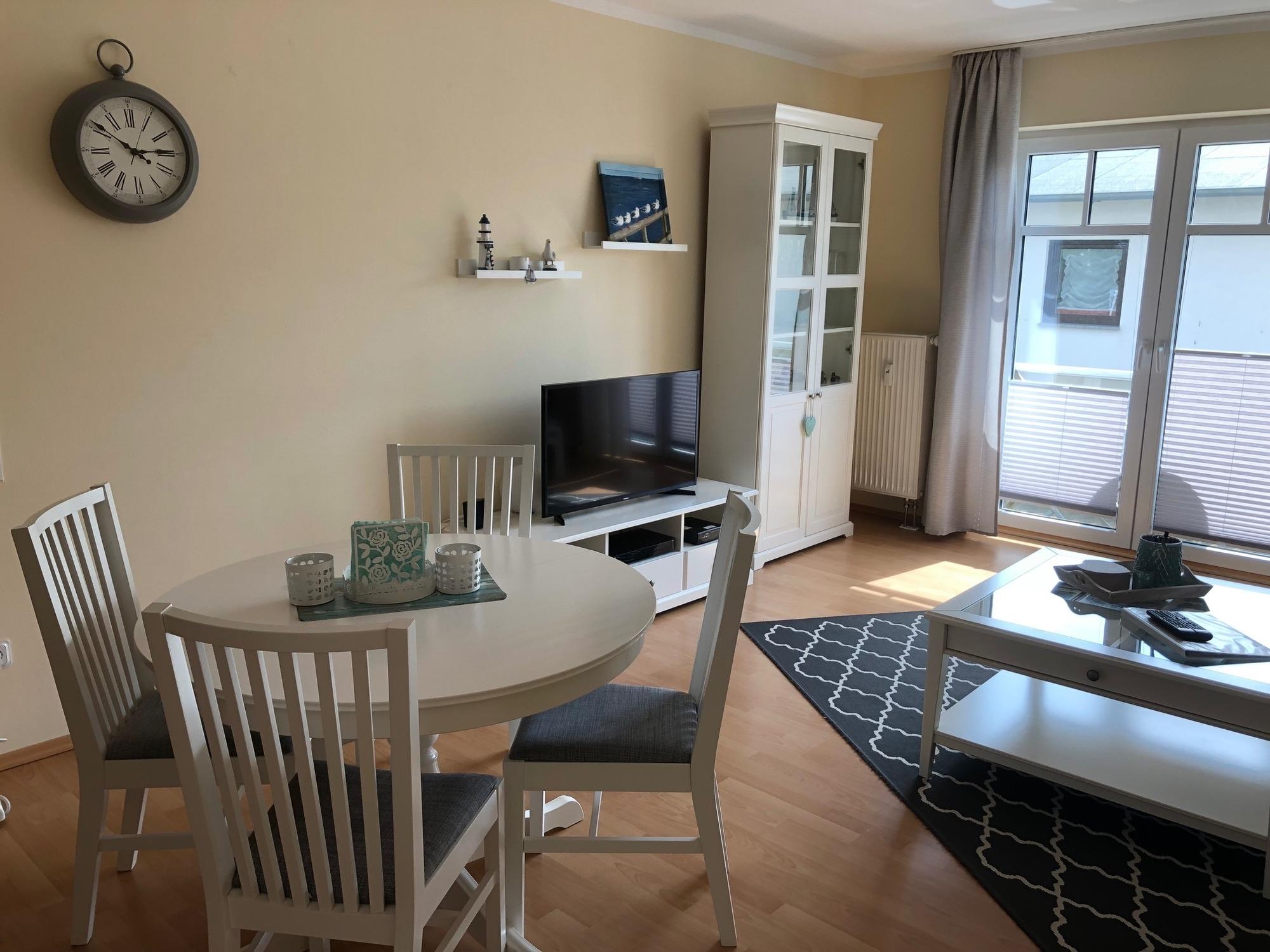 Ihre moderne und mit Liebe zum Detail eingerichtete 2-Raum-Nichtraucherwohnung 90563 hat eine Größe von ca. 50 qm. Die Wohnung bietet ein hohes Wohlfühl-Ambiente und ist für eine Belegung mit max. 4 Personen ausgestattet. Bei der Einrichtung wurde viel Wert auf eine maritime Note in dezenten natürlichen Farben gelegt. Sie befindet sich im 1. Obergeschoss auf der ruhigen Rückseite des Hauses in Richtung Schmachter See.