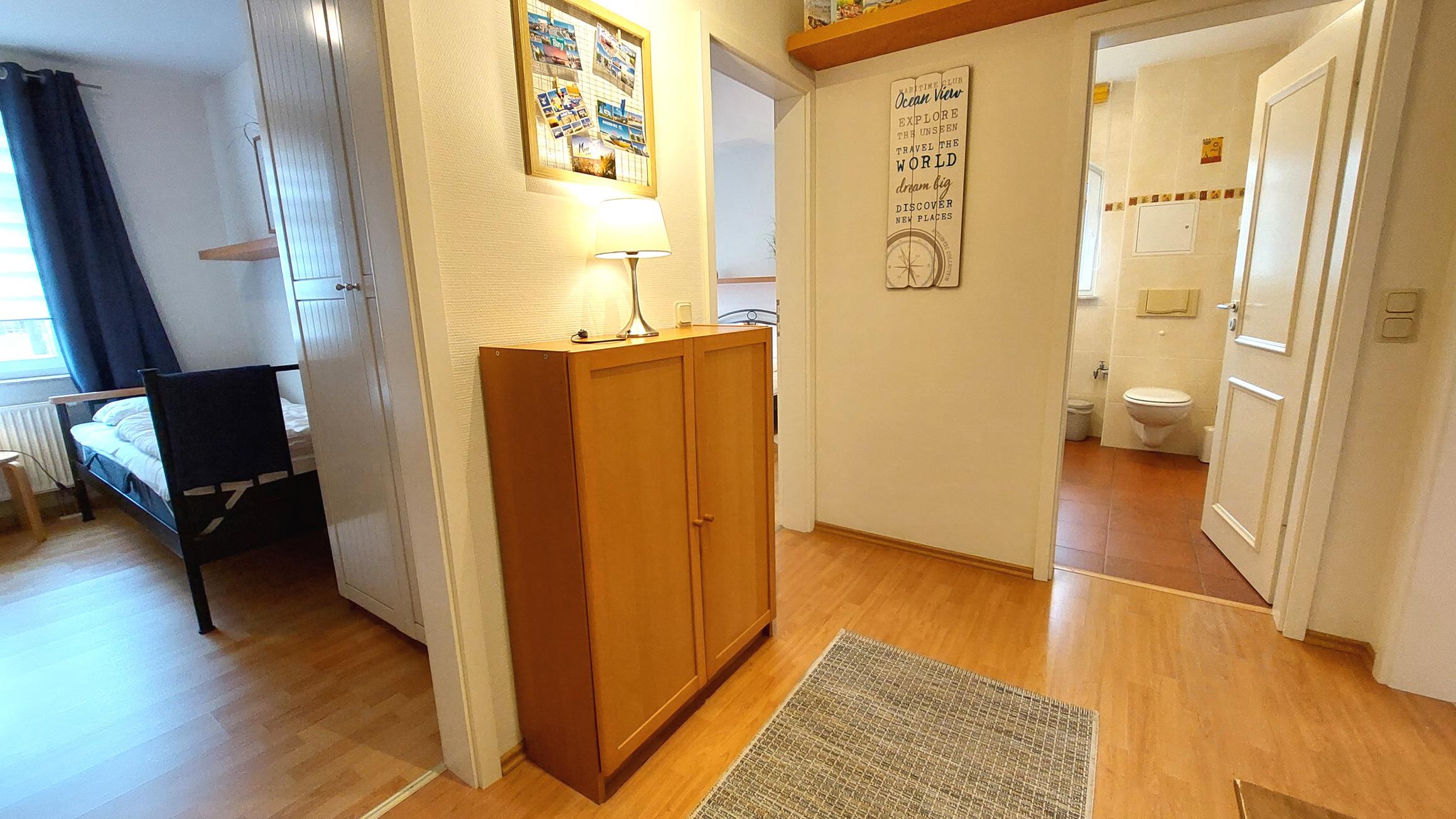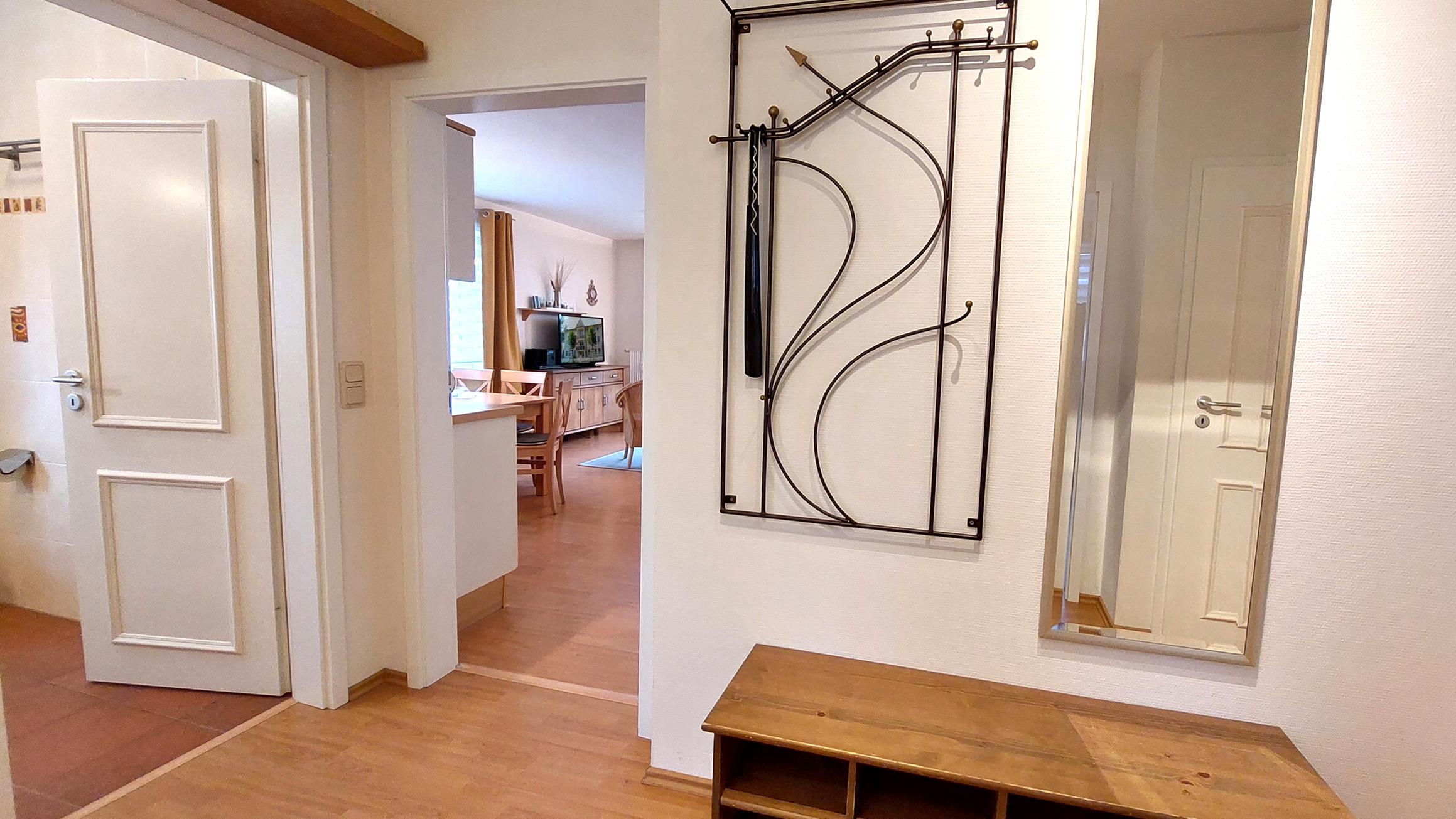 Vom geräumigen Flurbereich (samt Garderobe) gelangen Sie in beide Schlafzimmer, ins Tageslichtbad, sowie in den Wohnbereich.