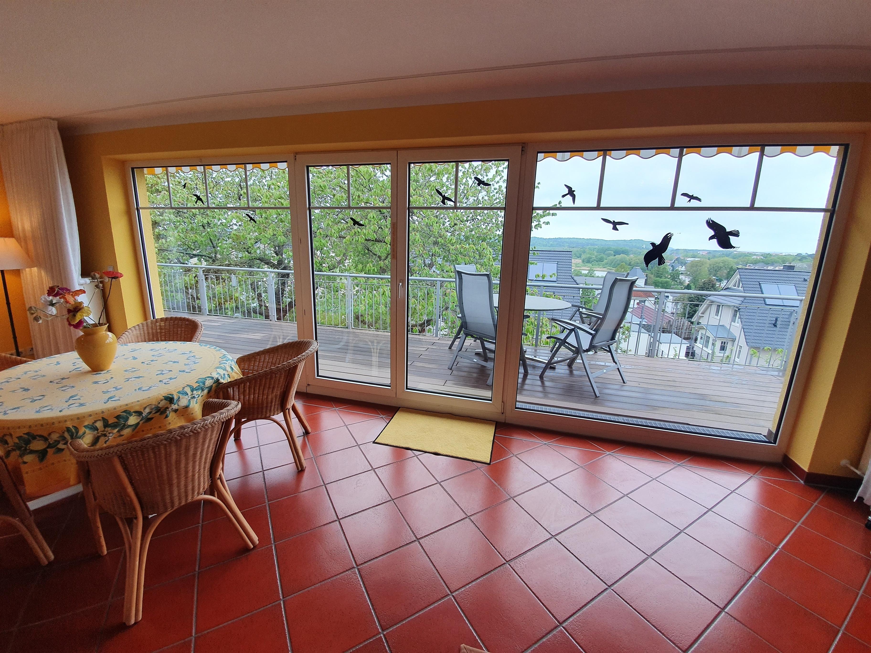 Die Unterkunft befindet auf dem Zinglingsberg. Die Hanglage auf einem der Binzer Hügeln garantiert aus vielen Wohnungen schöne Ausblicke auf den Binzer Ortskern, teilweise bis zum Schmacher See.