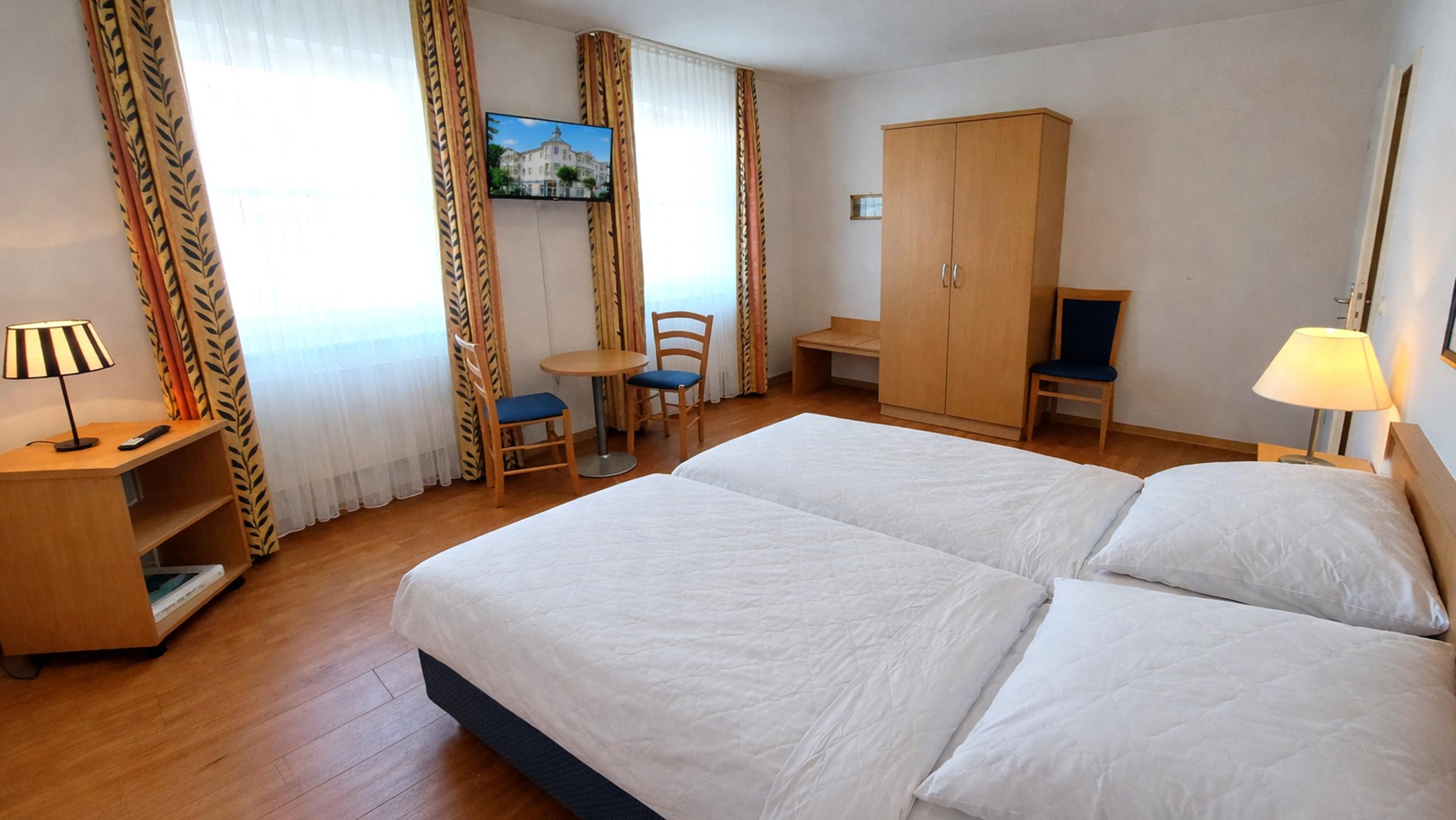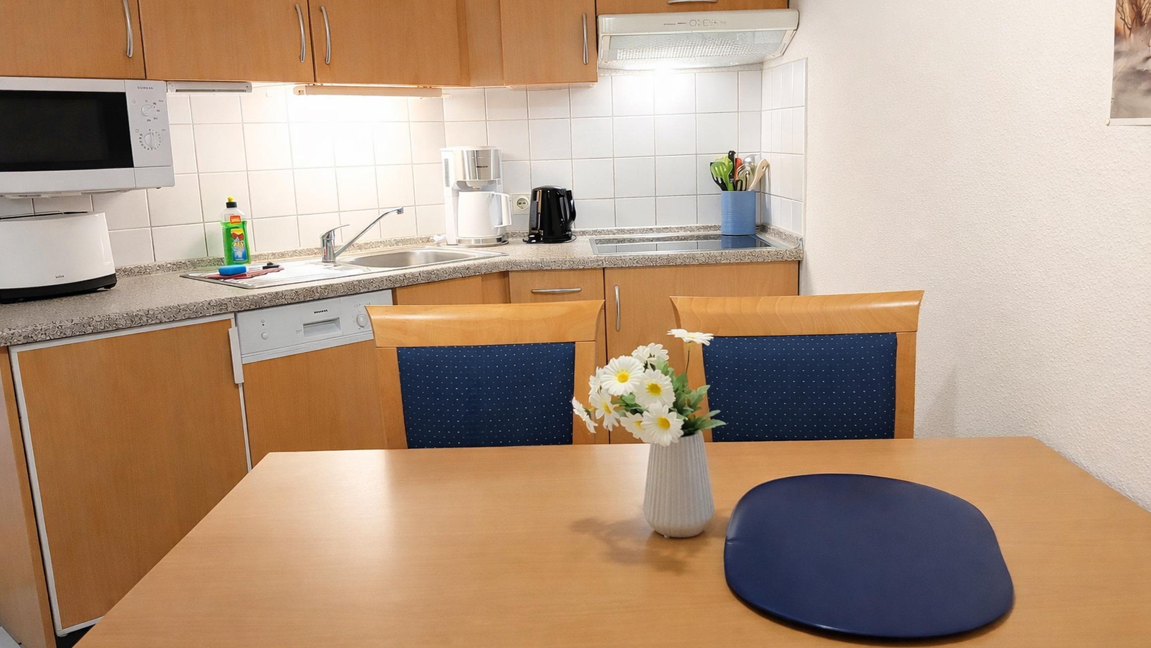 Ihre Nichtraucher-Ferienwohnung 90307 befindet sich im 2. Obergeschoss des Hauses. Die 2 Zimmer - Wohnung hat eine Größe von ca. 56 qm und verfügt über einen überdachten Frühstücks-Balkon. Neben dem Wohnraum gibt es einen separaten Schlafraum, eine separate Küche, Flur, ein Badezimmer mit Waschtisch, Dusche, WC und einen Abstellraum. Im Schlafraum befindet sich ein Doppelbett, ein Smart-TV, ein großer Kleiderschrank sowie verfügen die Fenster über Fliegengitter. Ein Zustellbett und[nbsp] ein Kinder-Reisebett gehören ebenfalls zur Ausstattung. Im Wohnraum können auf dem Schlafsofa weitere zwei Personen schlafen. Zur technischen Ausstattung gehören TV, Radio und kostenfreies WLAN. Die Küche ist mit Geschirrspülmaschine, Kühlschrank und diversen Kleingeräten komplett ausgestattet.