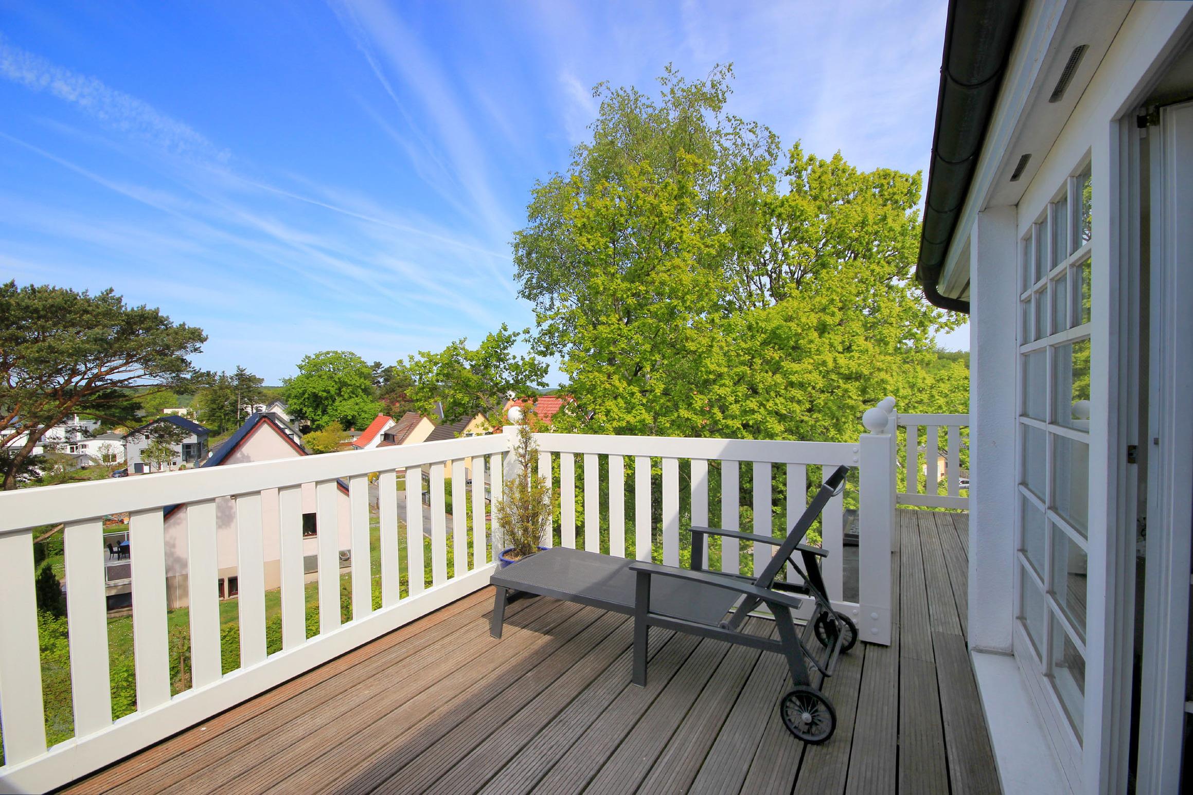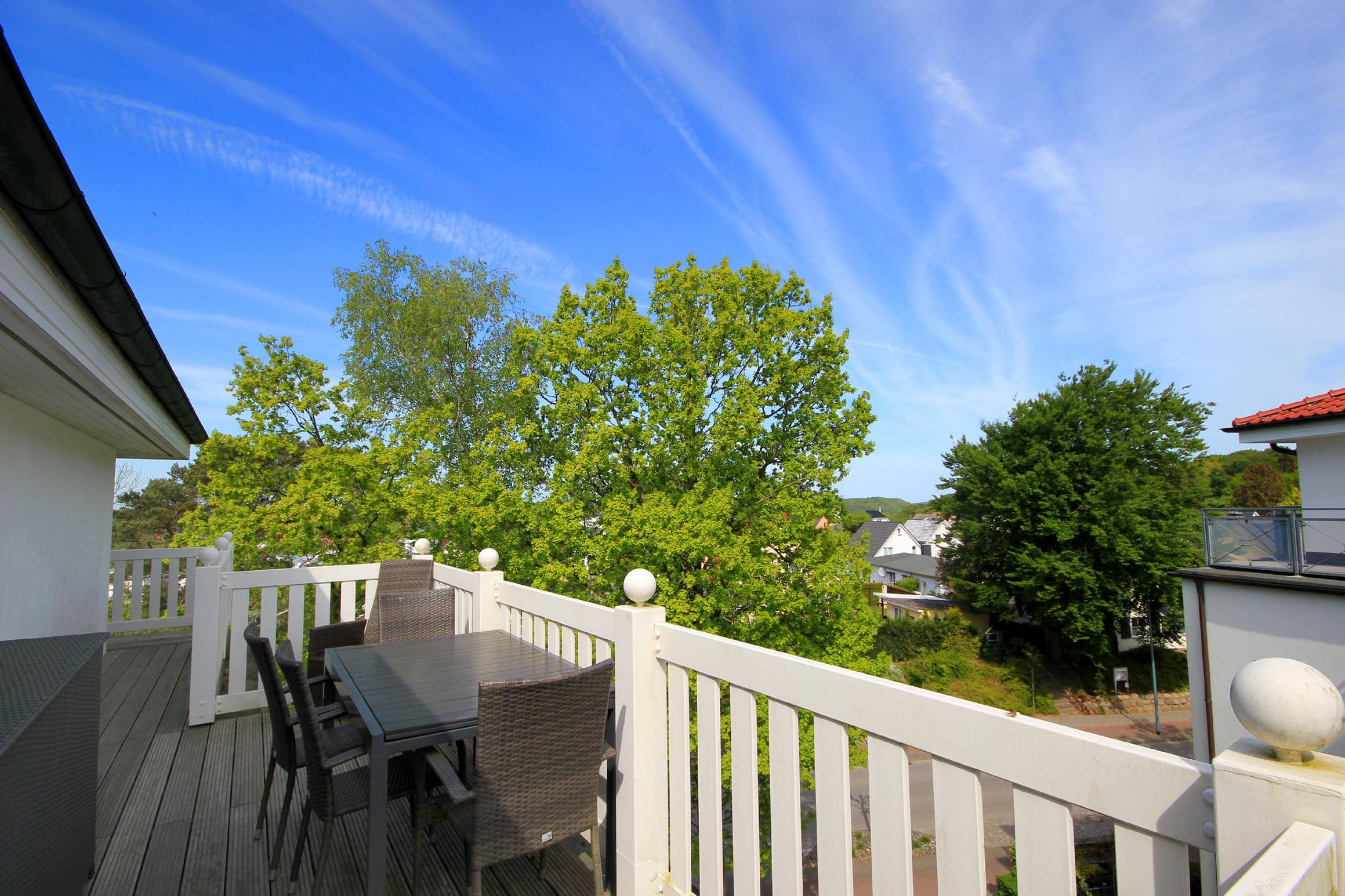 Die Unterkunft befindet auf dem Klünderberg. Die leichte Hanglage auf einem der Binzer Hügel garantiert aus vielen Wohnungen schöne Ausblicke auf den Binzer Ortskern, teilweise bis zur Ostsee.
