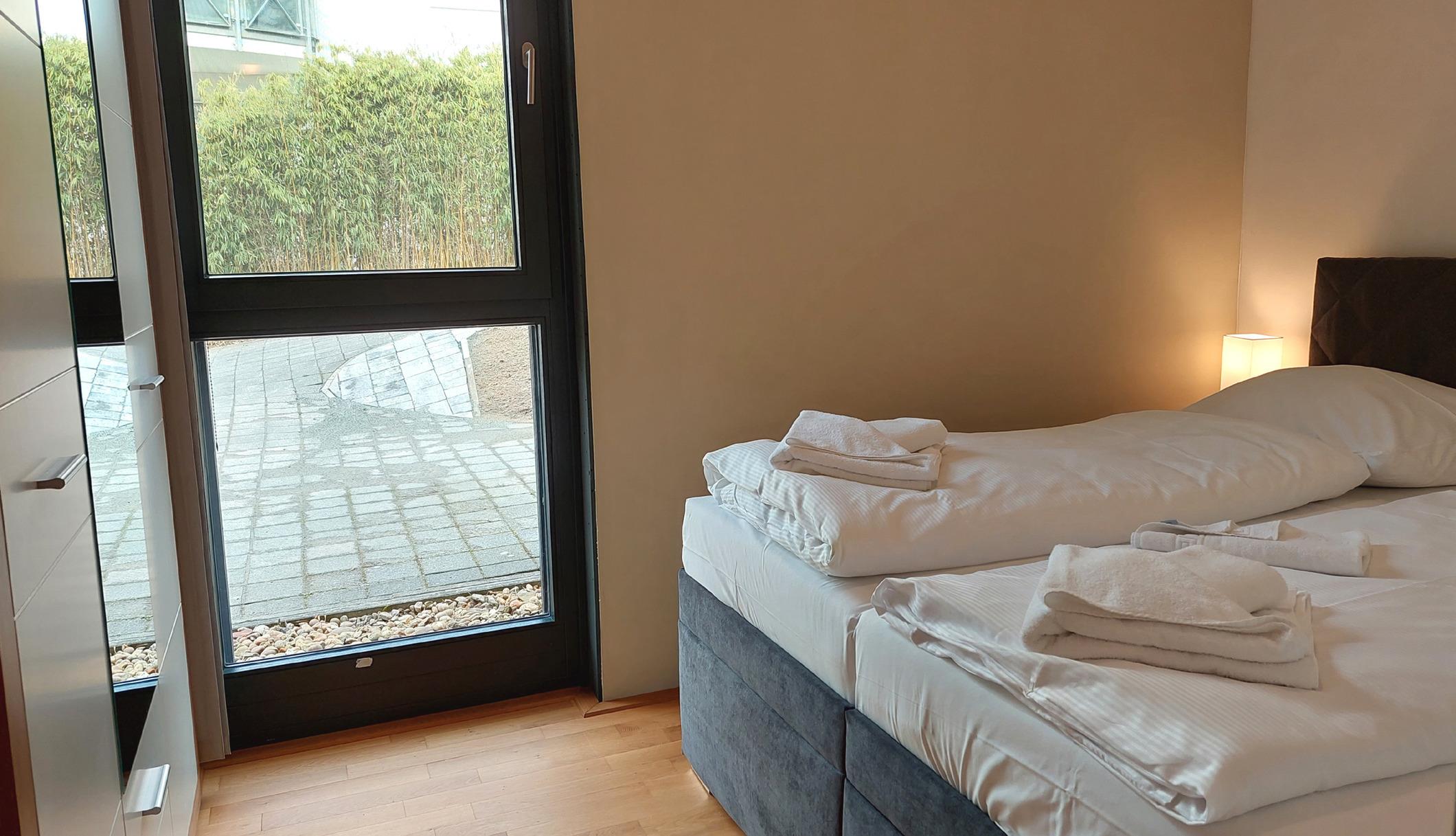 Über Außenjalousien ist das ganze Apartment abdunkelbar.