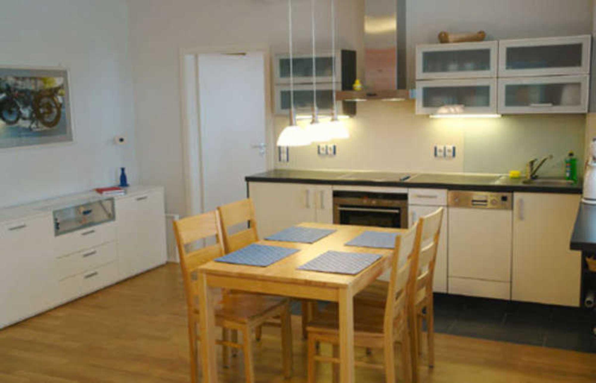 Diese elegante 50 qm große 2-Raum Nichtraucher-Wohnung mit edlem Eichenparkett, schallgedämmten Türen und Fenstern, elektrisch betriebenen Jalousien und Designermöbeln befindet sich im Erdgeschoss und besteht aus einem Schlafraum mit Doppelbett und Kleiderschrank, einem Flur mit Garderobe, einer kleinen Abstellkammer und einem Wohnraum mit TV, modernster Unterhaltungstechnik und einer Schlafcouch auf der zwei weitere Schlafplätze genutzt werden können. Neben dem Badezimmer mit Badewanne, Dusche, WC und Waschtisch gehört natürlich eine hochwertig ausgestatte Küche mit dem notwendigen Inventar dazu. Der Wohnung schließt sich eine ebenerdige überdachte Südterrasse mit eigenem kleinen Garten zur alleinigen Nutzung an. Durch die private Gartentür gelangen Sie unmittelbar in den Kurpark. Möchten Sie bequem vom Fahrradkeller in die Wohnung gelangen, befindet sich auch ein Fahrstuhl im Haus. Zusätzlich ist das Haus mit einem Münz-Waschtrockner ausgestattet.