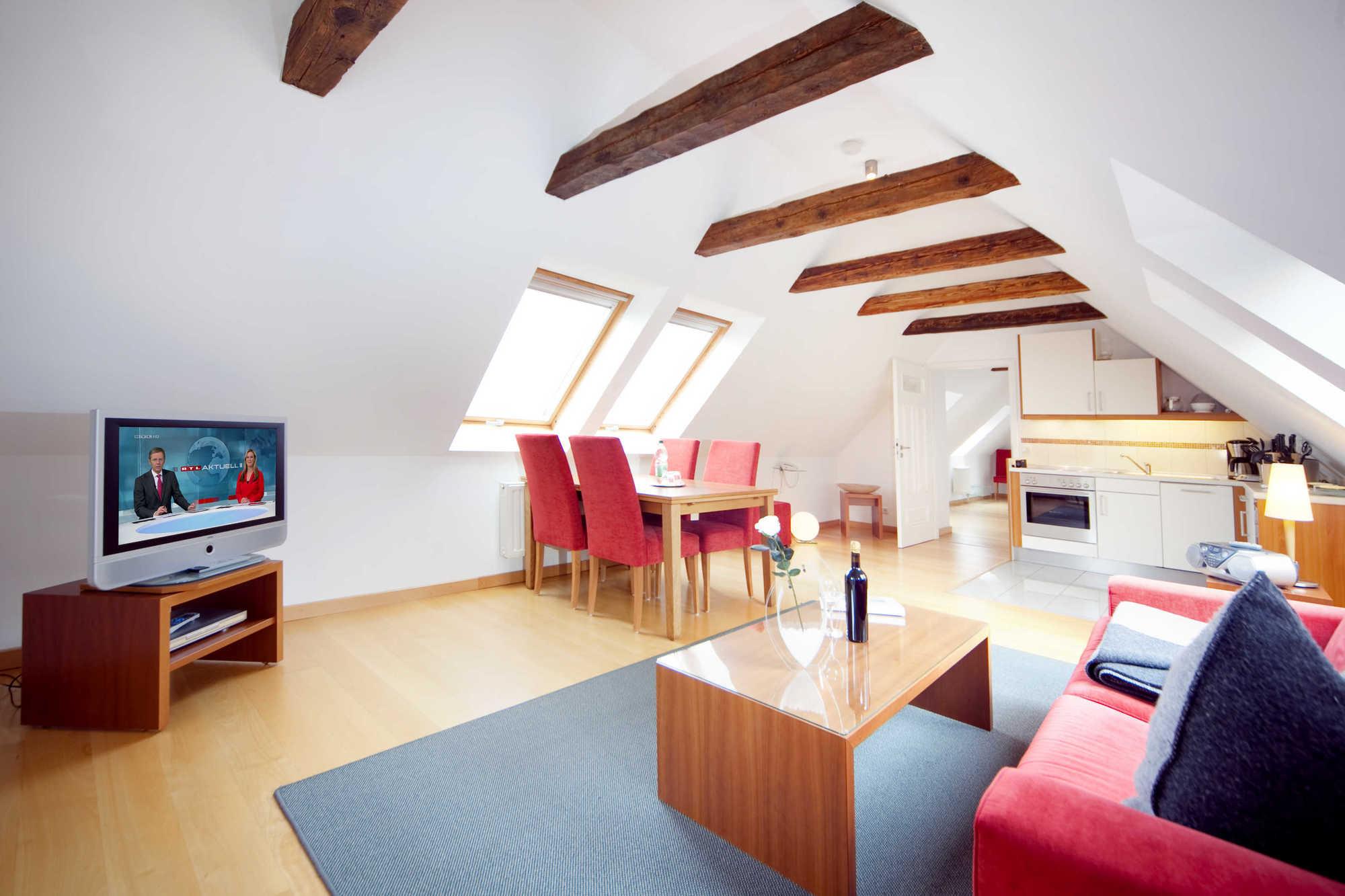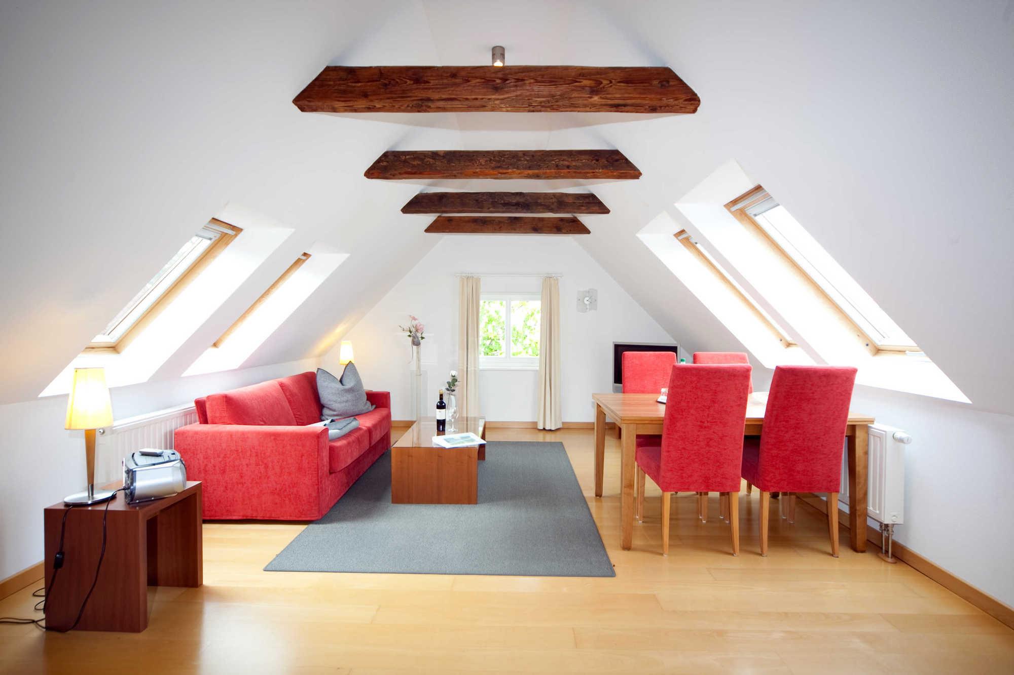 Ihre moderne Ferienwohnung 32RB10 befindet sich im Dachgeschoss. Die 2-Raum-Wohnung hat eine Größe von ca. 70 qm und ist mit 4 Personen belegbar. Die Wohnung verfügt über einen Safe. Neben dem schön eingerichteten Wohnraum mit integrierter Küchenzeile gibt es einen separaten Schlafraum und ein Badezimmer mit Waschtisch, Dusche und WC. Das Schlafzimmer verfügt über ein Doppelbett und einen Kleiderschrank. Im gemütlichen Wohnbereich befindet sich eine Sitzgruppe mit Schlafsofa, Essplatz, TV und Telefon. Die Küche ist mit Geschirrspülmaschine, Ceranfeld, Backofen, Kühlschrank und diversen Kleingeräten komplett ausgestattet. Ein PKW-Stellplatz steht Ihnen direkt am Haus zur Verfügung.