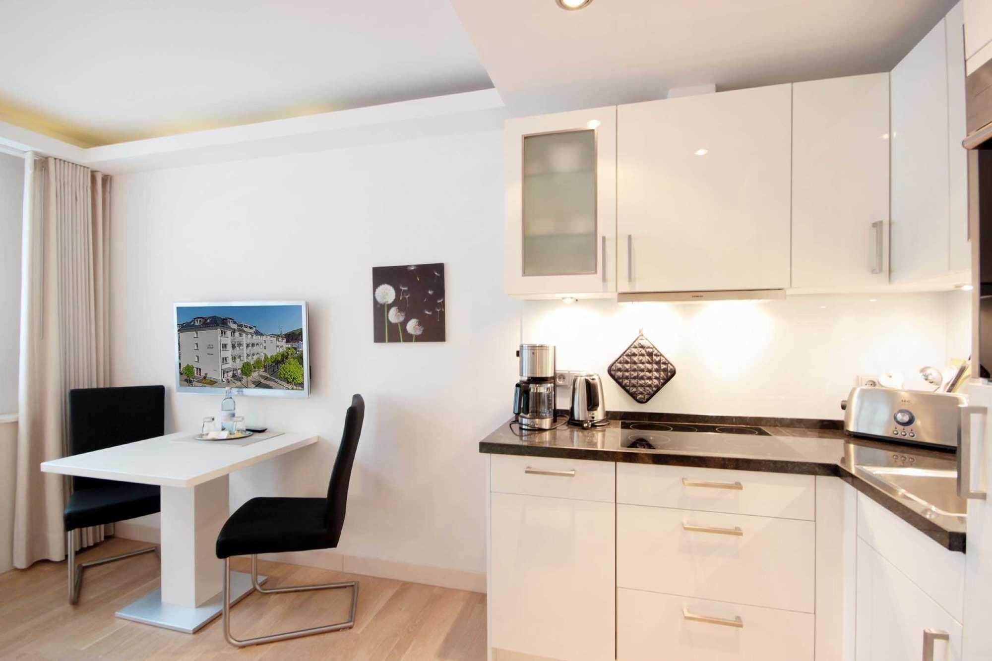 Vom gemütlichen Balkon mit Markise können Sie das Frühstück beim Sonnenschein genießen sowie den weiten Blick über die Dächer von Binz. Neben dem Wohnraum mit integrierter Küche gibt es einen separaten Schlafraum, ein Badezimmer mit Fußbodenheizung, Waschtisch, geräumiger Dusche, WC, festinstalliertem Fön und einen separaten Abstellraum im Flur des Hauses. Im Wohnraum können Sie auf dem bequemen Sofa die Seele baumeln lassen. Zudem finden Sie im Wohnbereich einen 3D-Flachbildfernseher mit Radiofunktion sowie einen Essplatz. Im Schlafraum befindet sich ein Boxspringbett, ein Kleiderschrank sowie ein Flachbildfernseher mit Radiofunktion. Die Küche ist mit Geschirrspülmaschine, Backofen, Cerankochfeld, Kühlschrank und Kaffeemaschine, Toaster, Wasserkocher und diversen Kleingeräten komplett ausgestattet.