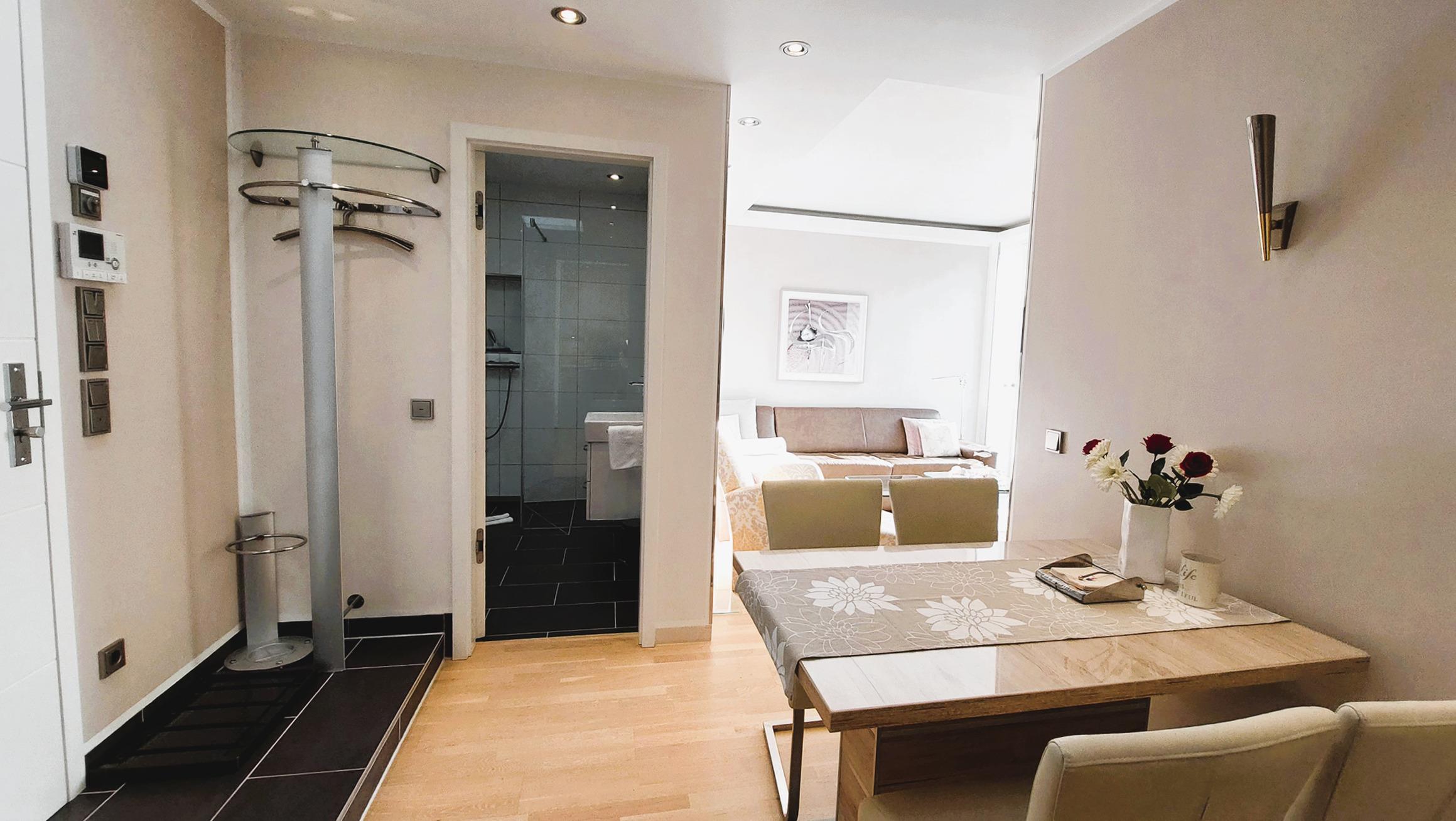 Noch vor der Wohnung befindet sich ein großer, eigener Abstellraum mit allerhand Stauraum (z.B. für Koffer), einer Garderobe und einem Safe für Ihre Wertsachen.