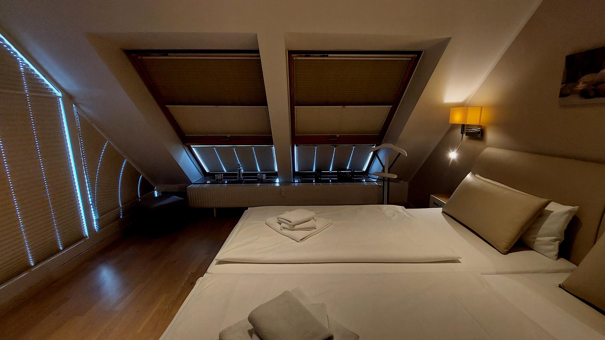 Das eigentliche Appartement vermittelt durch die bodentiefen Fensterfronten und die verlängerten Dachfenster ein großzügiges und lichtdurchflutetes Raumgefühl.