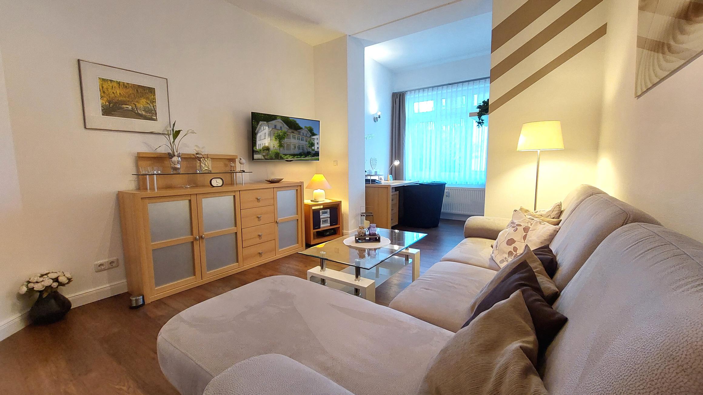 Ein kleines Haustier (bis 10 kg) ist erlaubt. Sie befindet sich im Erdgeschoss und verfügt über einen Balkon. Im gemütlichen Wohnraum finden Sie eine Sitzgruppe mit Schlafsofa welches Platz für die 3. und 4. Person bietet, einen Flachbild-TV, und eine Musikanlage. Das separate Schlafzimmer verfügt über ein Doppelbett, einen Flachbild-TV und einen großen Kleiderschrank. Die Küche ist mit Ceran-Einbauherd , Mikrowelle, Geschirrspülmaschine, Kaffeemaschine, Wasserkocher und diversen anderen Küchenhelfern perfekt ausgestattet. Des Weiteren steht Ihnen ein helles Duschbad mit WC zur Verfügung. Falls doch einmal Homeoffice ansteht, bietet die Wohnung neben schnellem WLAN auch einen Schreibtisch, welcher "Workation" problemlos möglich macht. Ein PKW-Stellplatz am Haus zur Verfügung.