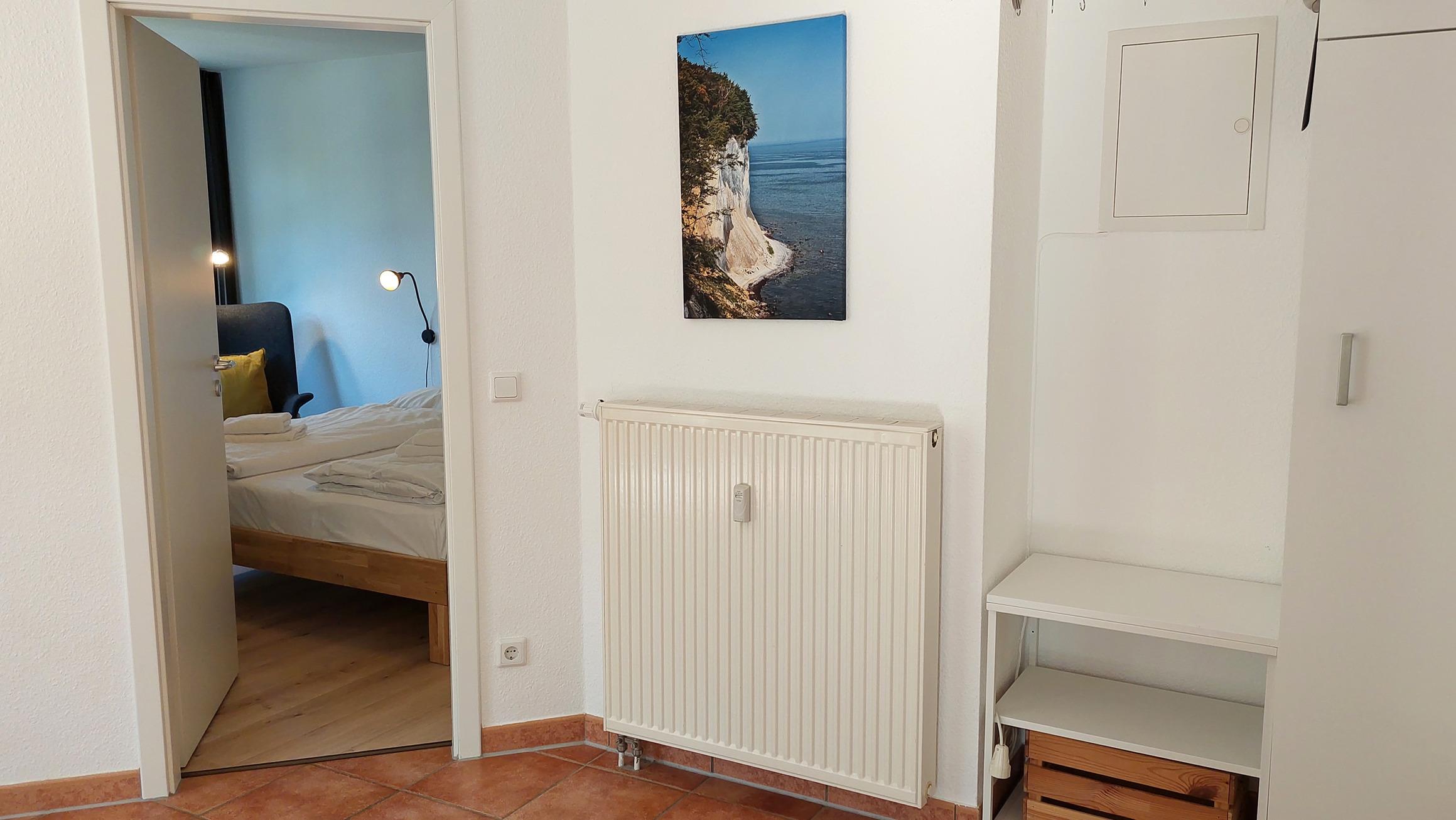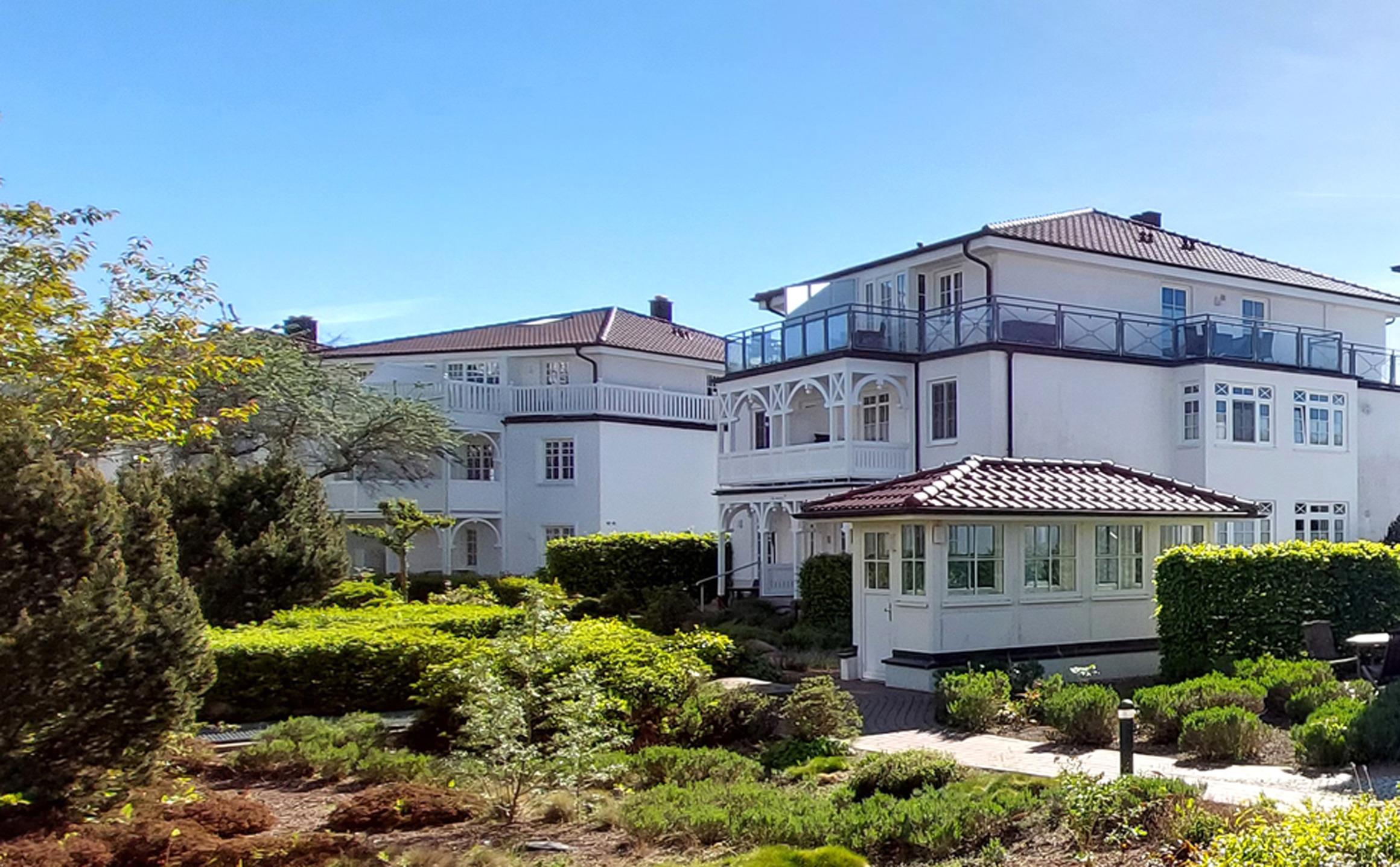Die Unterkunft befindet auf dem Klünderberg. Die leichte Hanglage auf einem der Binzer Hügeln garantiert aus vielen Wohnungen schöne Ausblicke auf den Binzer Ortskern, teilweise bis zur Ostsee.