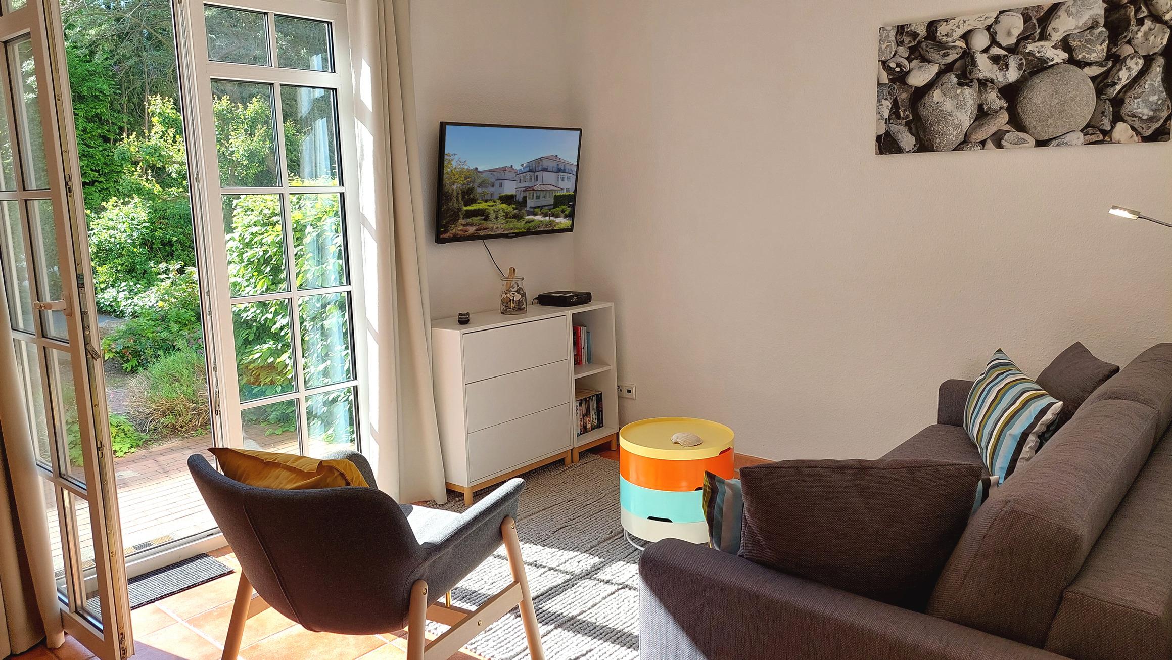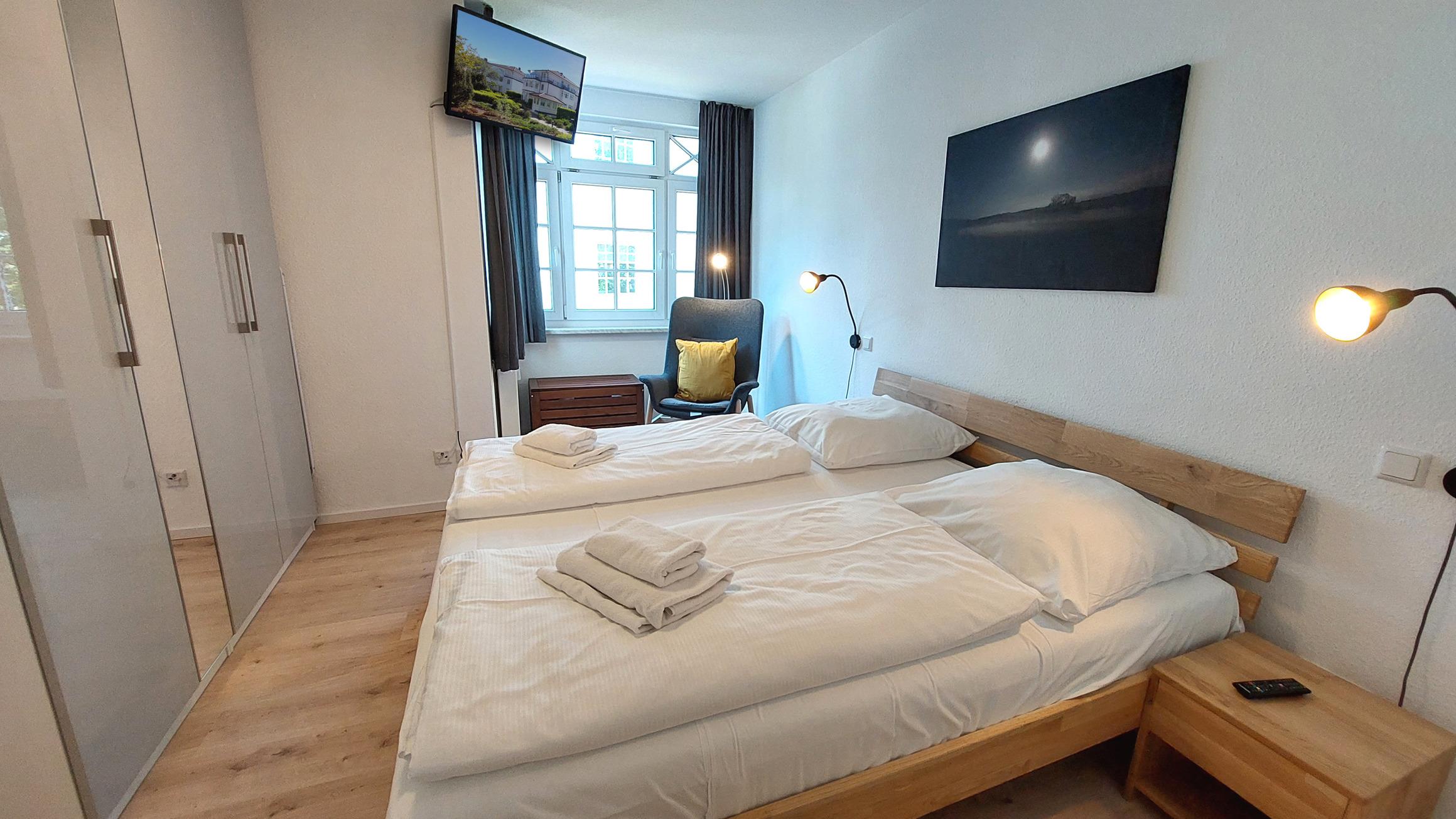 Ihre Ferienwohnung 9RB12 (Nichtraucher) befindet sich im Erdgeschoss der Villa Bakenberg in der Residenz am Klünderberg. Die 2 - Zimmer - Wohnung hat eine Größe von ca. 45 qm und ist mit bis zu 4 Personen belegbar. Die schöne Südterrasse lädt zum Verweilen und Sonnenbaden ein. Neben dem Wohnraum mit offener Küche und Essplatz, gibt es einen separaten Schlafraum, sowie ein Badezimmer mit Waschtisch, Dusche und WC. Der Schlafraum ist mit einem Doppelbett, einem großem Kleiderschrank und einem Flachbildfernseher mit DVD-Player ausgestattet. Im komfortablen Wohnraum finden Sie ebenfalls einen Flachbildfernseher sowie das gemütliche Schlafsofa für die 3. und 4. Person. Die Küche ist perfekt für Ihren Urlaub ausgestattet und verfügt im Detail über Backofen, 4-Platten-Herd, Geschirrspüler, Kühl-/Gefrierkombination, Kaffeemaschine, Wasserkocher und diverse andere „Küchenhelfer". Highlights: Ein kostenloser Internetzugang und ein wohnungseigener Tiefgaragenstellplatz (1,50m hoch) stehen Ihnen für die Zeit Ihres Aufenthaltes zur Verfügung.