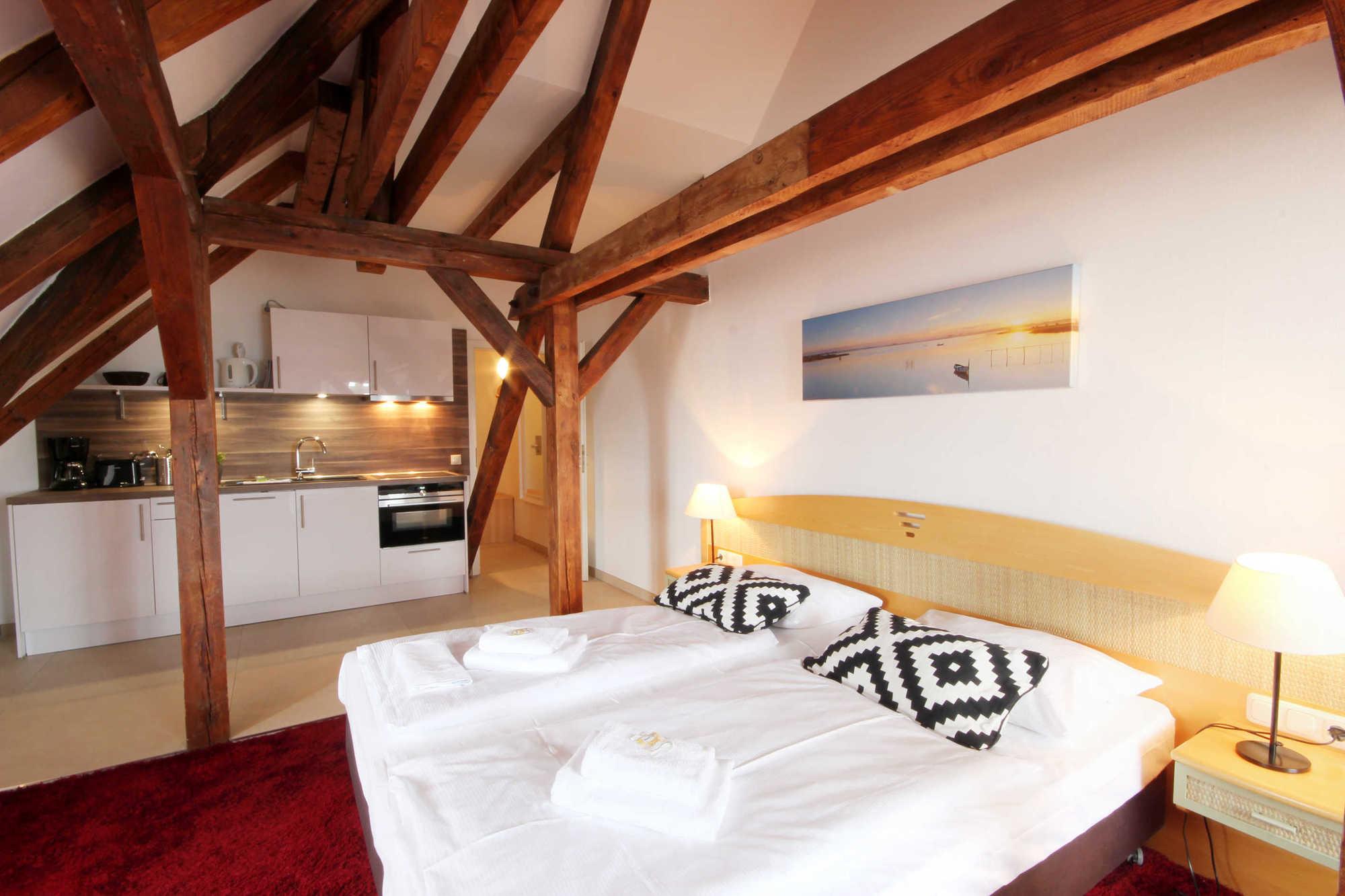 Ihre 1-Zimmer Ferienwohnung 225RB27 befindet sich im Dachgeschoss, ist ca. 45 qm groß und für 2 Personen gut geeignet. Neben dem kombinierten Wohn- und Schlafbereich mit Doppelbett, gehört ein Essbereich, ein Schreibtisch, Flachbild TV sowie WLAN zur Nichtraucherwohnung. Vom gemütlichen Wohn- und Schlafbereich genießen Sie den Blick auf die Strandpromenade sowie auf die Binzer Bucht. Ebenfalls können Sie eine voll ausgestattete integrierte Küchenzeile mit Geschirrspüler, Nespresso-Maschine, Backofen, Mikrowelle, Wasserkocher, Toaster und Kaffeemaschine nutzen. Das Tageslichtbad erwartet Sie mit Waschtisch, WC und Dusche.