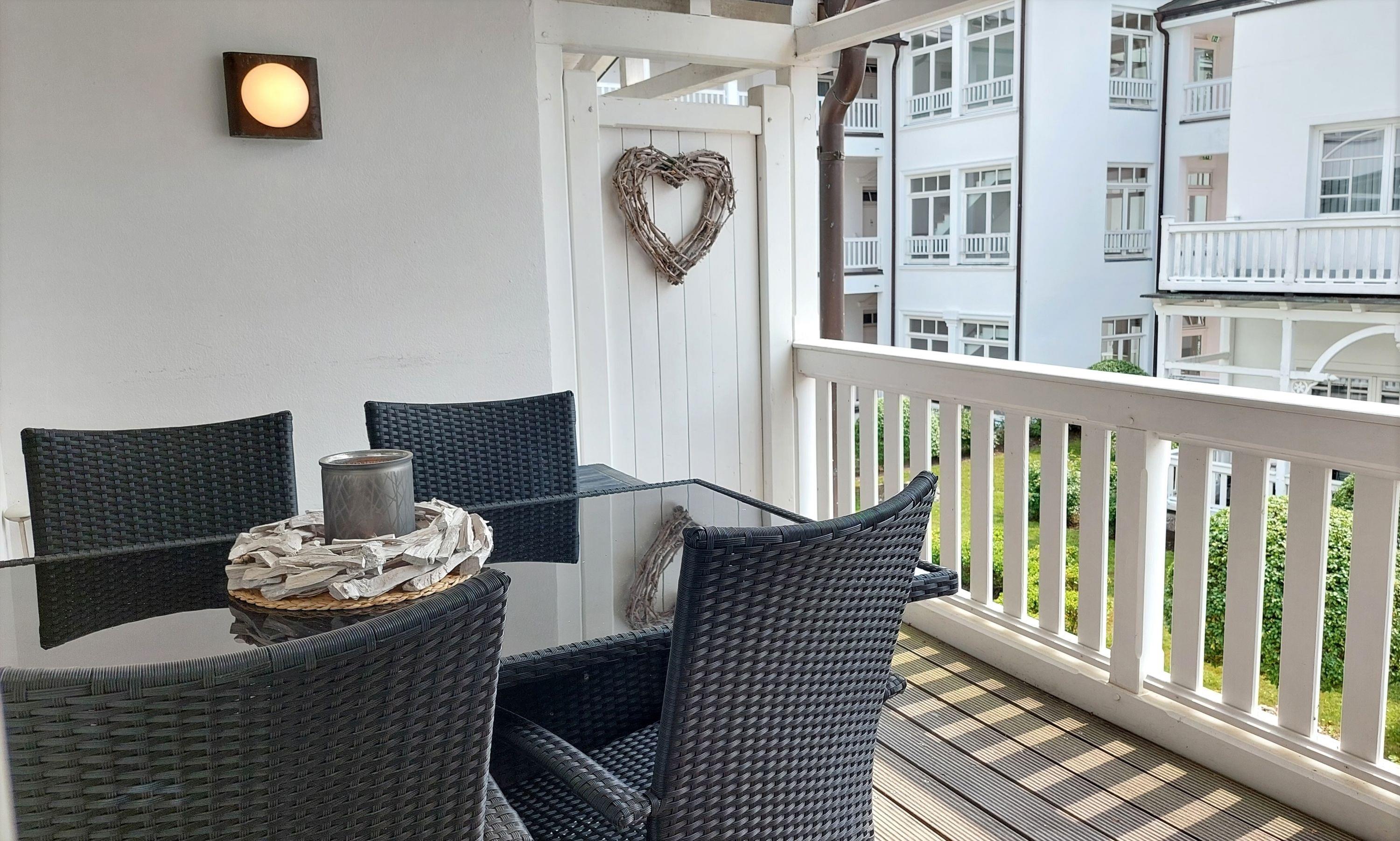Von dort aus haben Sie auch Zugang zum möblierten Balkon Richtung Nordosten mit Blick auf den grünen Innenhof.