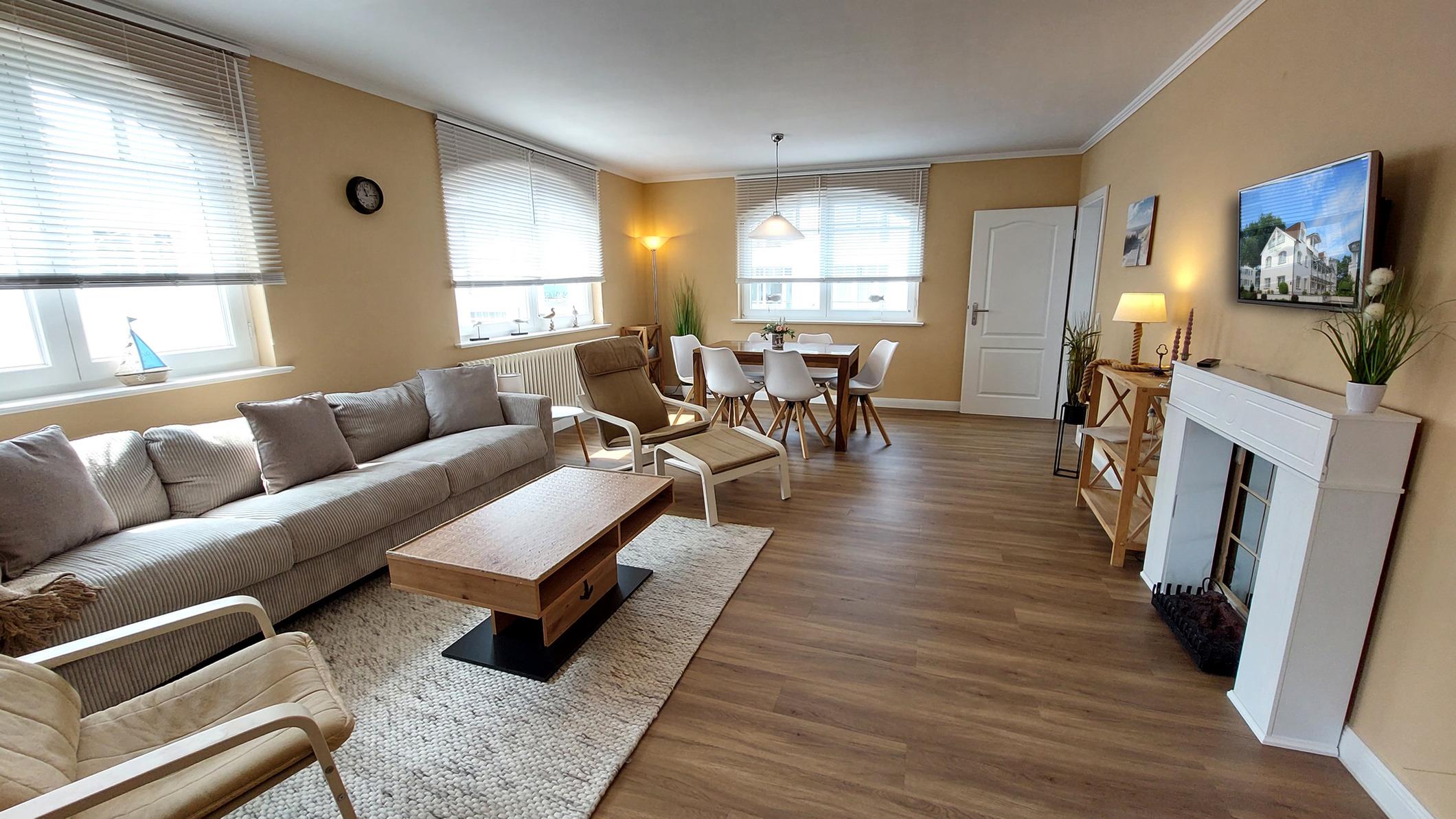 Highlight ist der großzügige und helle kombinierte Wohn- und Essbereich mit großer Sitzlandschaft und Esstisch für 6 Personen.