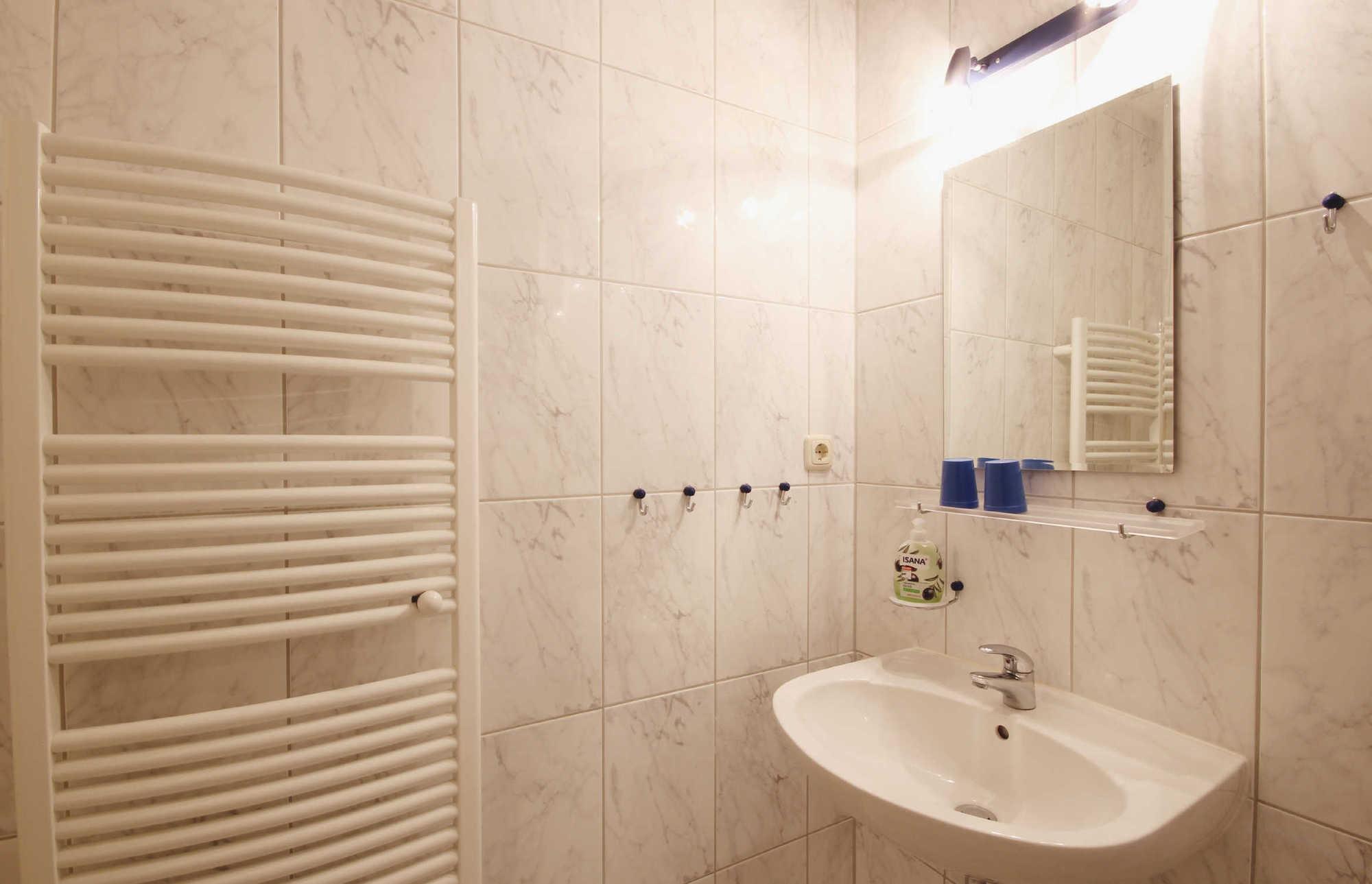 Ihre Ferienwohnung 90447 befindet sich im 1. Obergeschoss des Hauses Villa Hans. Die 1 Zimmer - Wohnung hat eine Größe von ca. 25 qm und ist mit bis zu 2 Personen belegbar. Neben dem kombinierten Wohn- und Schlafzimmer mit Essbereich gibt es eine Küchenzeile sowie ein separates Badezimmer mit Waschtisch, Dusche, Handtuchheiztrockner und WC. Der Wohn- / Schlafbereich verfügt über ein Doppelbett; einen Kleiderschrank, einen Flachbild-TV sowie einen kostenlosen WLAN-Zugang. Die kleine Wohnküche ist mit einem Kühlschrank, Kochfeld, Kaffeemaschine, Wasserkocher, Toaster und diversen Kleingeräten ausgestattet. Ein wohnungseigener Außenstellplatz sowie eine Unterstellmöglichkeit für Ihre Fahrräder steht Ihnen am Haus zur Verfügung.