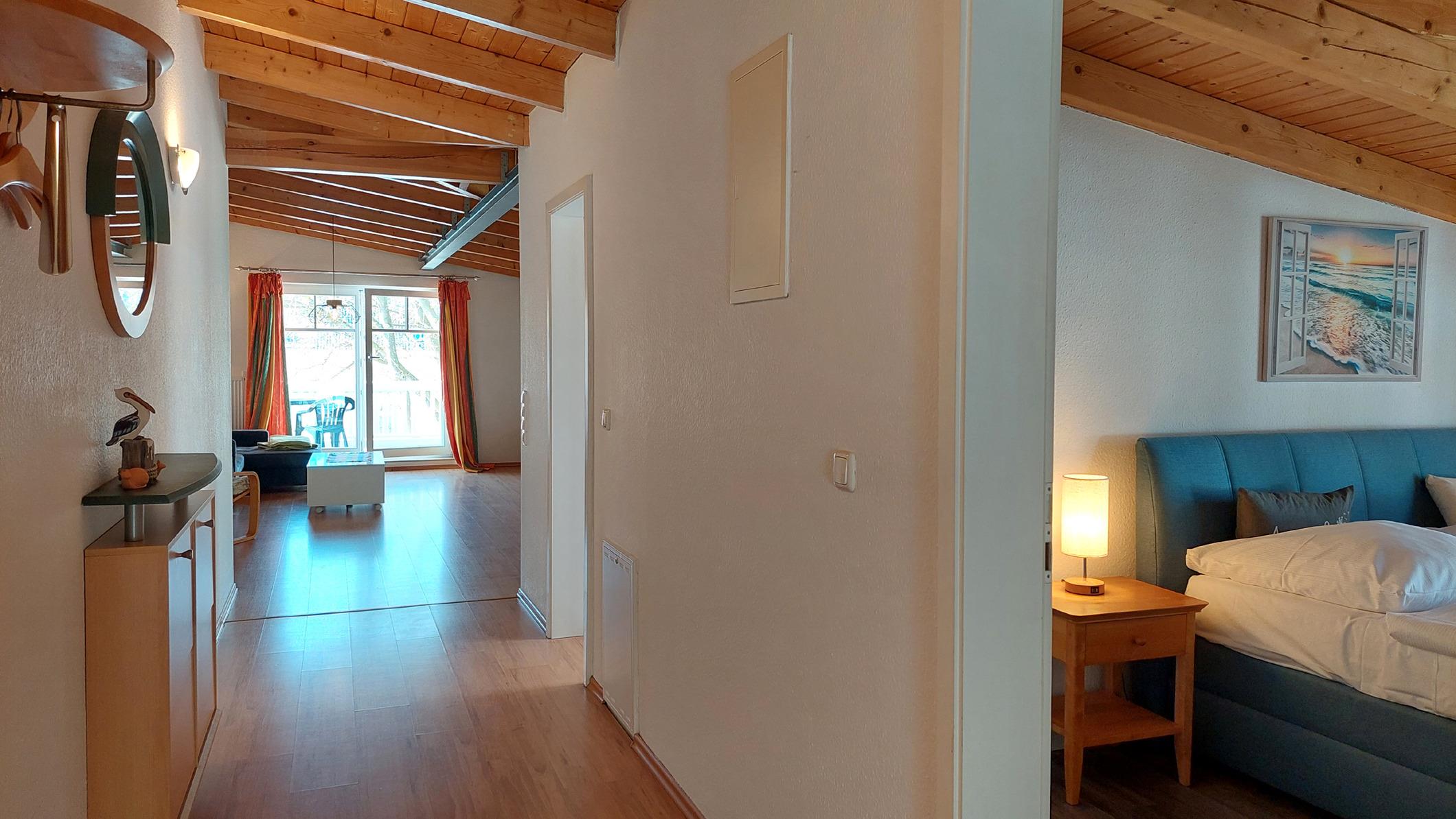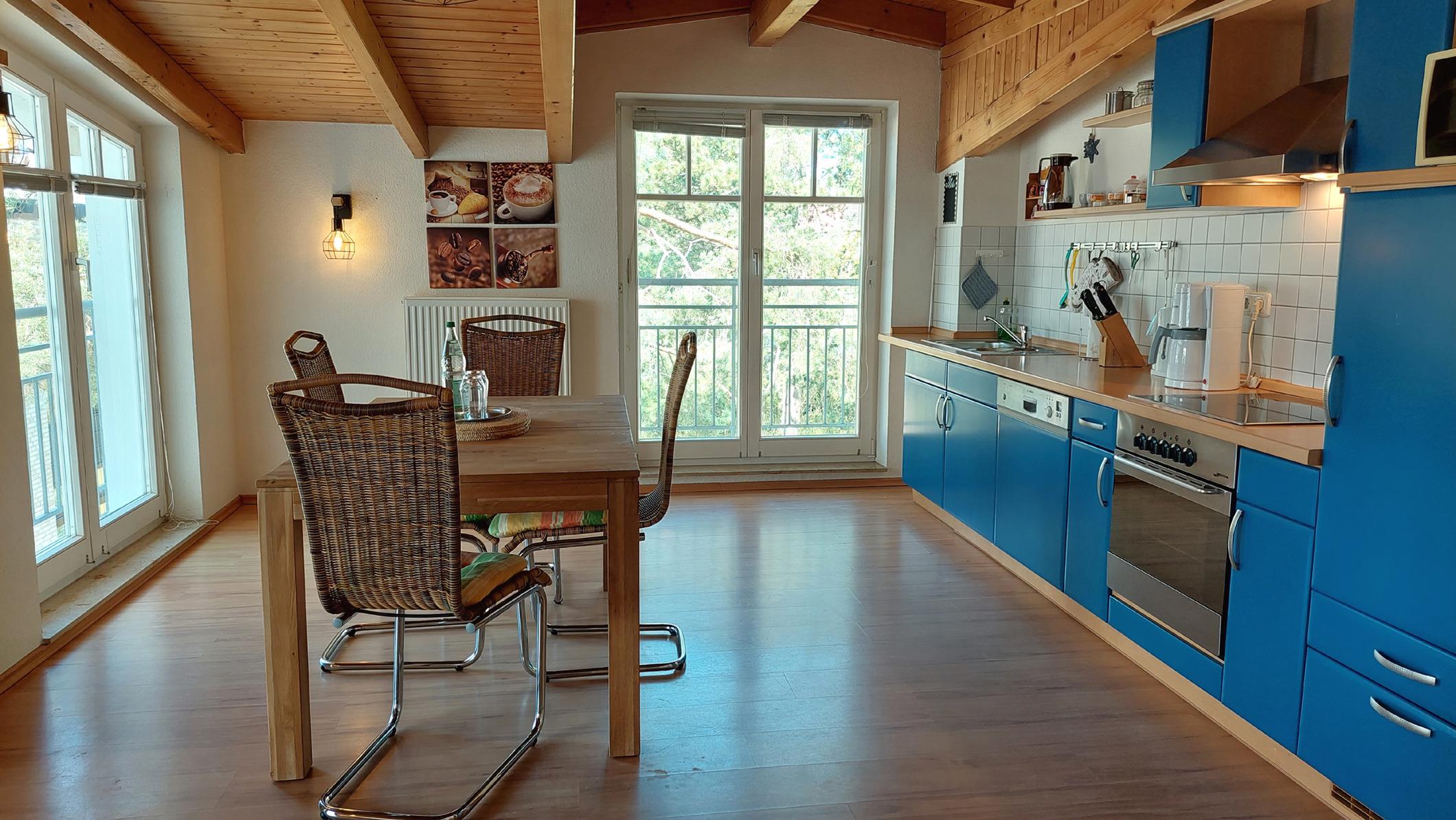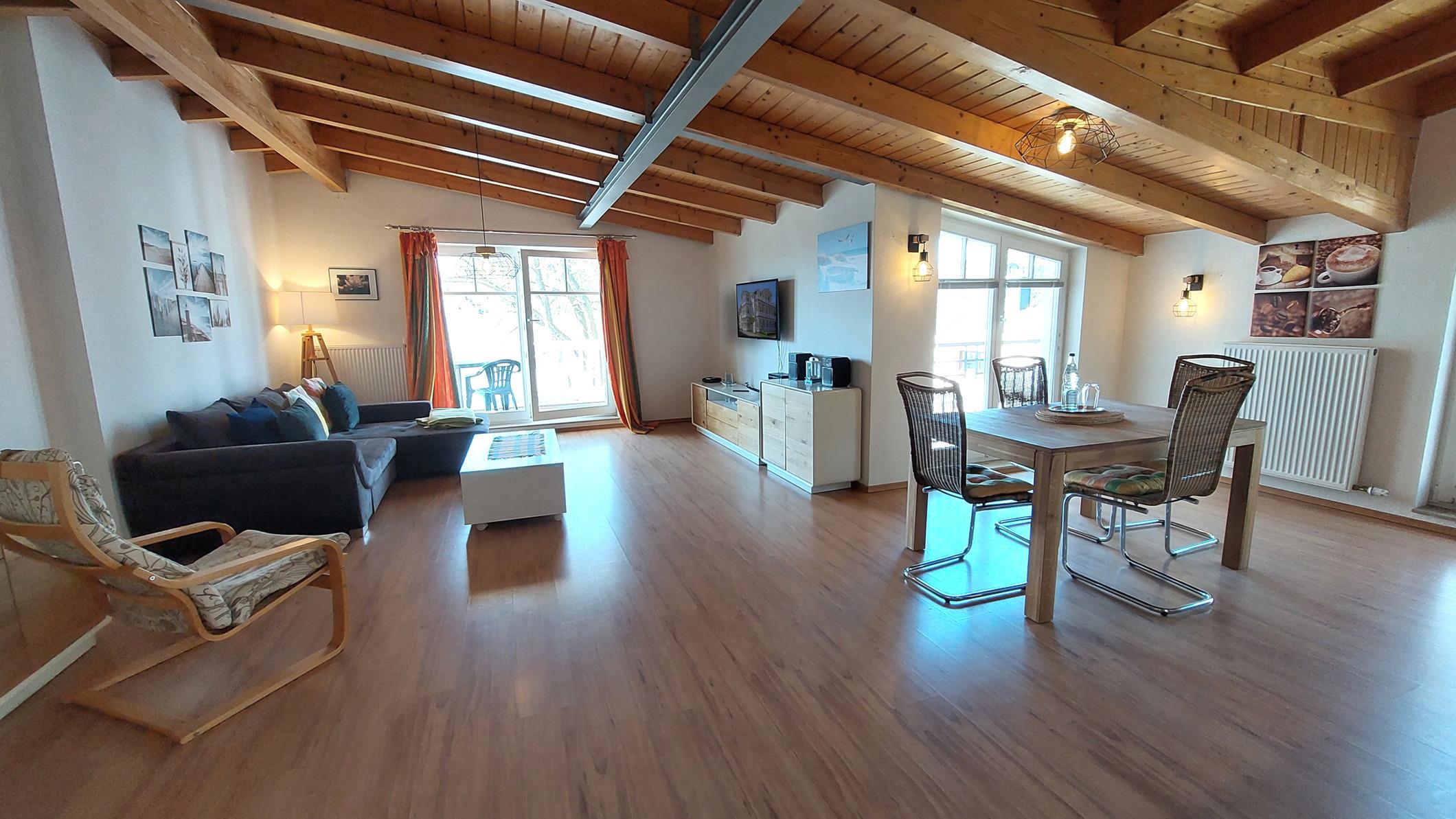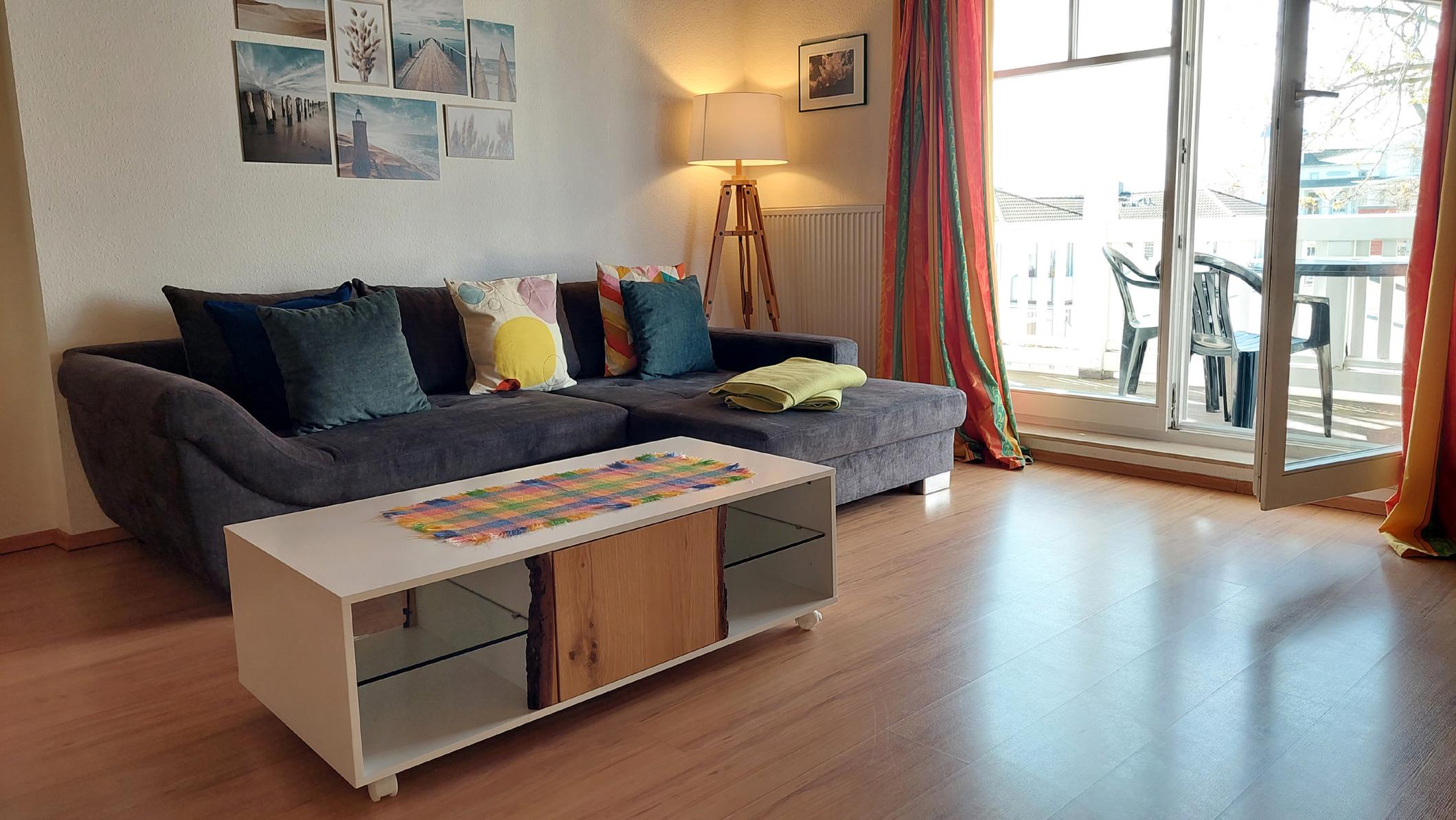 Diese Wohnung präsentiert sich seinen Gästen mit großen Fenstern, Deckenbalken, einem großen Südbalkon auf dem Sie am Nachmittag die Sonne genießen können und einem zusätzlichen Westbalkon, von dem ein kleiner Meerblick möglich ist. [nbsp]Alle unsere Gäste haben einen gebührenfreien W-Lan Zugang in dieser Wohnung.